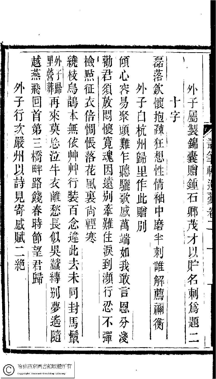 詩詞 [外子屬製錦囊贈鍾石卿茂才以貯名刺為題二十字]