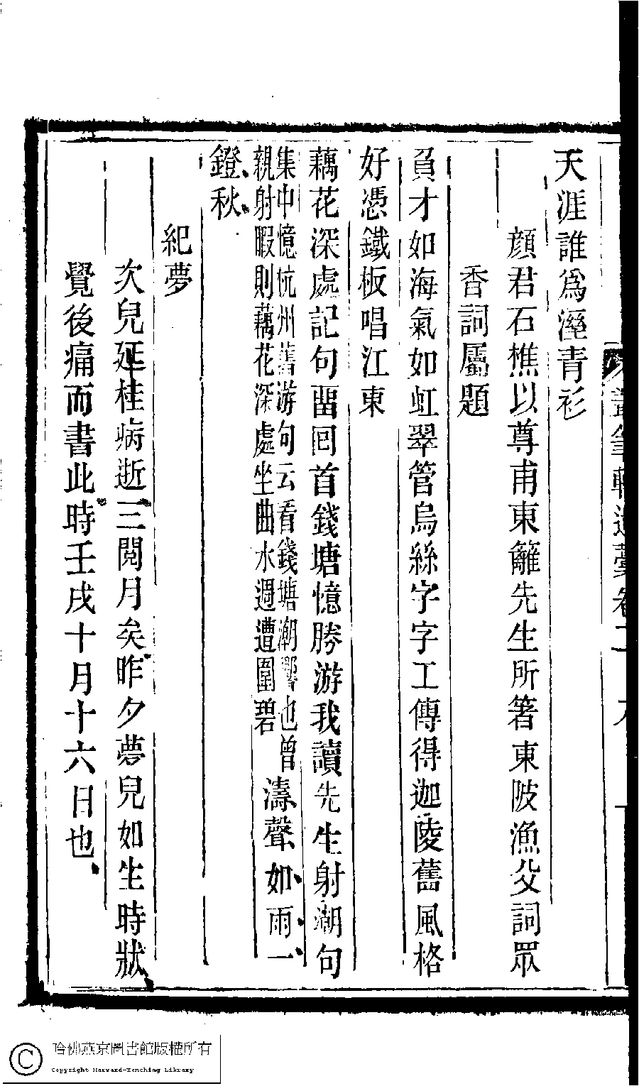 | 備註: 次兒延桂病逝三閱月矣昨昔夢兒如生時狀覺後痛而書此時壬戌十月十六日也 |