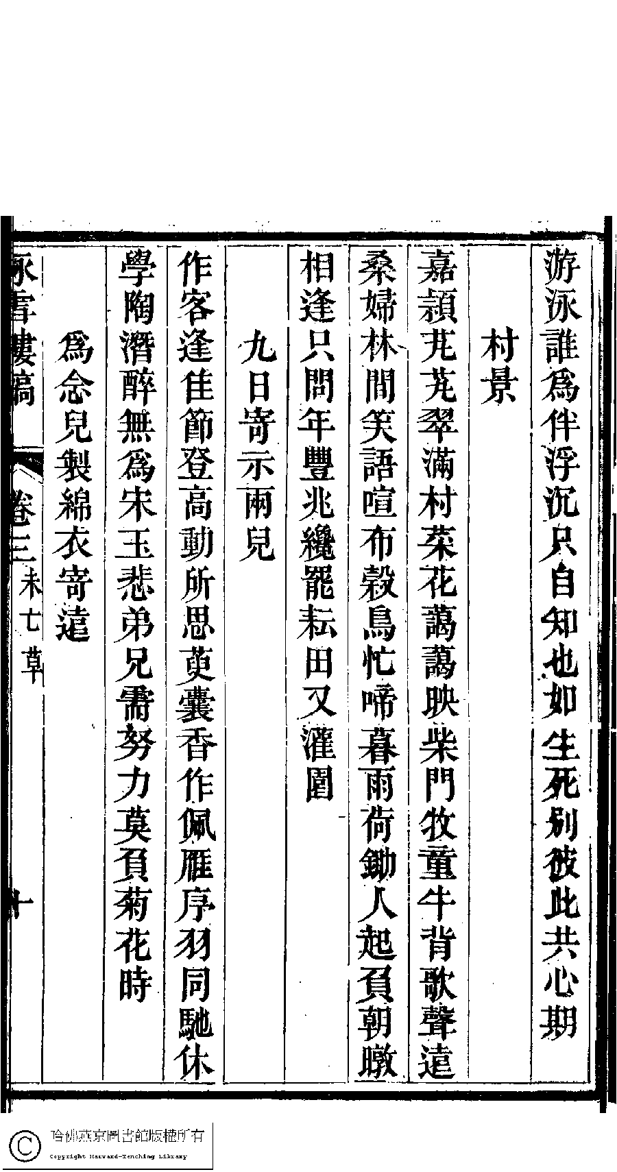 | (PRINT FRIENDLY VERSION) 詠雪樓稿﹕五卷,卷首一卷,附一卷(清甘立媃撰)。清道光二十三年(1843)徐心田半偈齋刻本。 ![]() 頁碼 : 3.10a | 点 击 放 大 | 詠雪樓稿﹕五卷,卷首一卷,附一卷(清甘立媃撰)。清道光二十三年(1843)徐心田半偈齋刻本。![]() 頁碼 : 3.9b | 点 击 放 大 | 返回 |