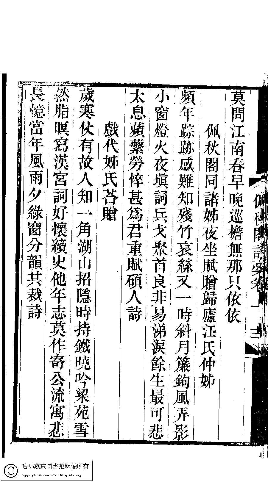 | 原書: 佩秋閣遺稿﹕二卷﹐詞稿﹕一卷﹐文稿﹕一卷(清吳茝撰) |