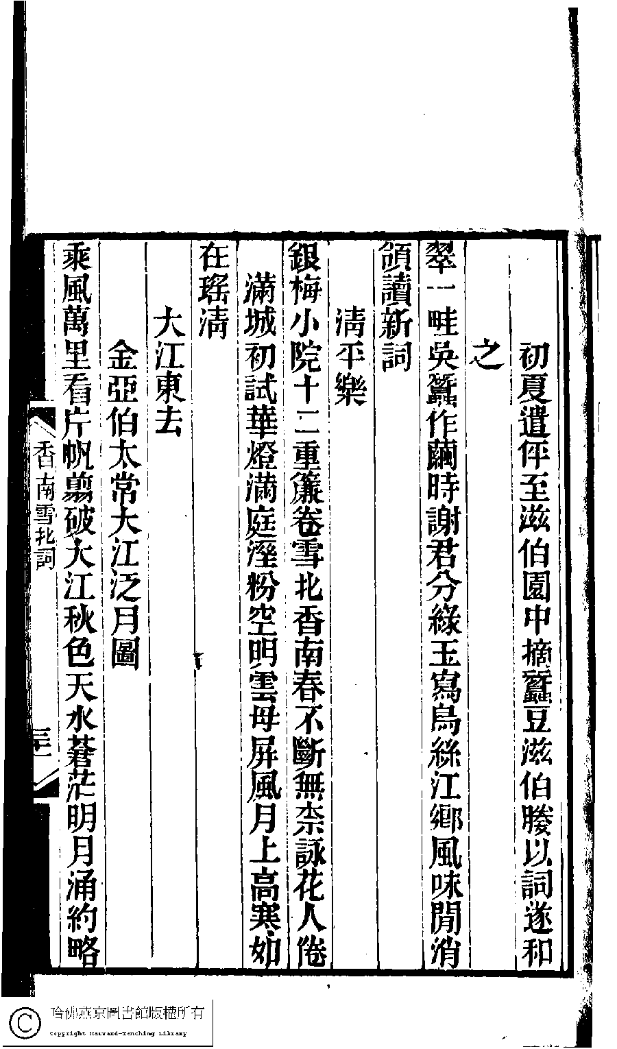 | 原書: 林下雅音集﹕五種(淸冒俊輯): 香南雪北詞: 一卷 |