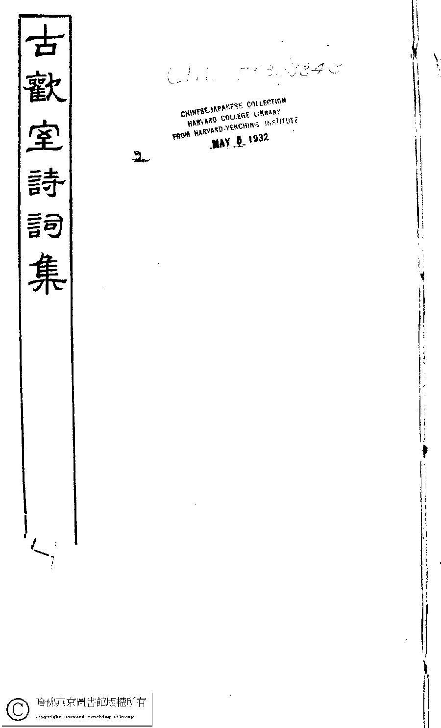 古歡室詩集:三卷﹐詞集﹕一卷(清曾懿撰)。清光緖三十三年(1907)刻本。