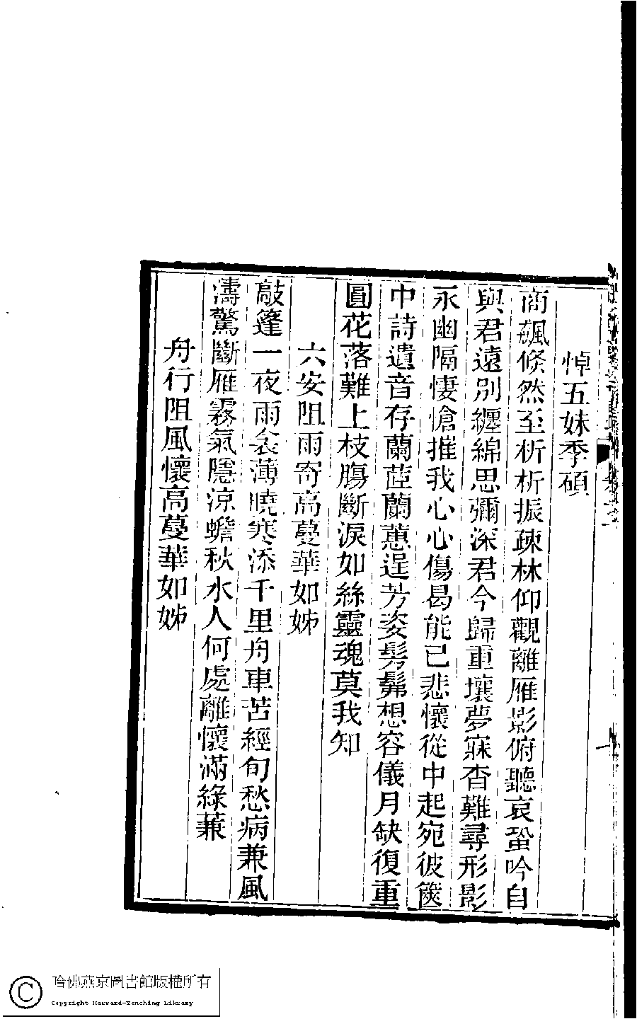 | (PRINT FRIENDLY VERSION) 古歡室詩集:三卷﹐詞集﹕一卷(清曾懿撰)。清光緖三十三年(1907)刻本。 ![]() 頁碼 : 3.7b | 点 击 放 大 | 返回 |