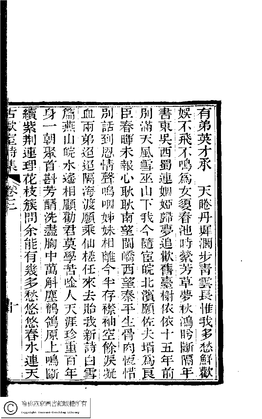 | (PRINT FRIENDLY VERSION) 古歡室詩集:三卷﹐詞集﹕一卷(清曾懿撰)。清光緖三十三年(1907)刻本。 ![]() 頁碼 : 3.10b | 点 击 放 大 | 古歡室詩集:三卷﹐詞集﹕一卷(清曾懿撰)。清光緖三十三年(1907)刻本。![]() 頁碼 : 3.10a | 点 击 放 大 | 古歡室詩集:三卷﹐詞集﹕一卷(清曾懿撰)。清光緖三十三年(1907)刻本。![]() 頁碼 : 3.9b | 点 击 放 大 | 返回 |