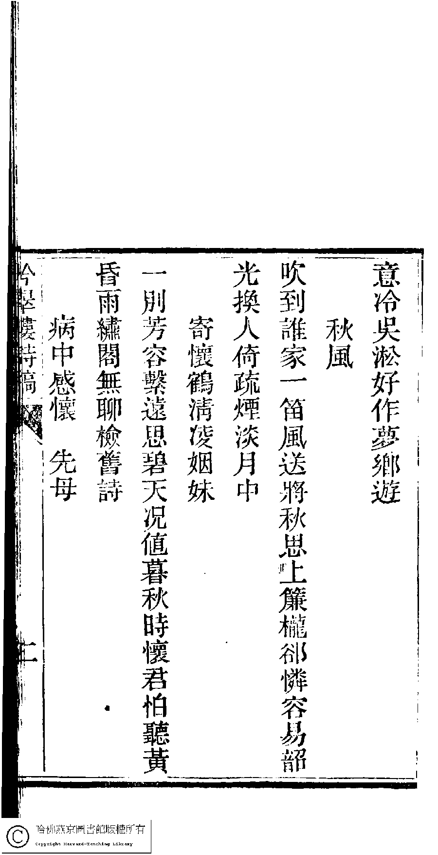 | 原書: 吟翠樓詩稿﹕一卷﹐附刻﹕一卷(清孫佩蘭撰) |