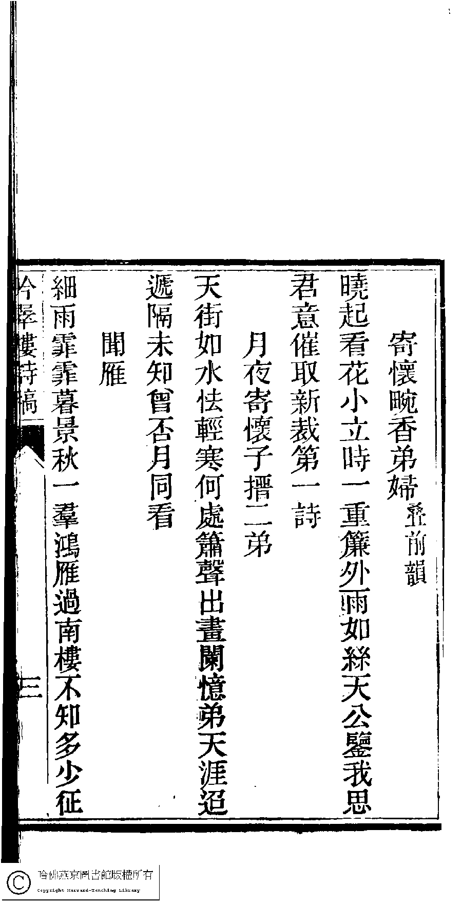 | 原書: 吟翠樓詩稿﹕一卷﹐附刻﹕一卷(清孫佩蘭撰) |
