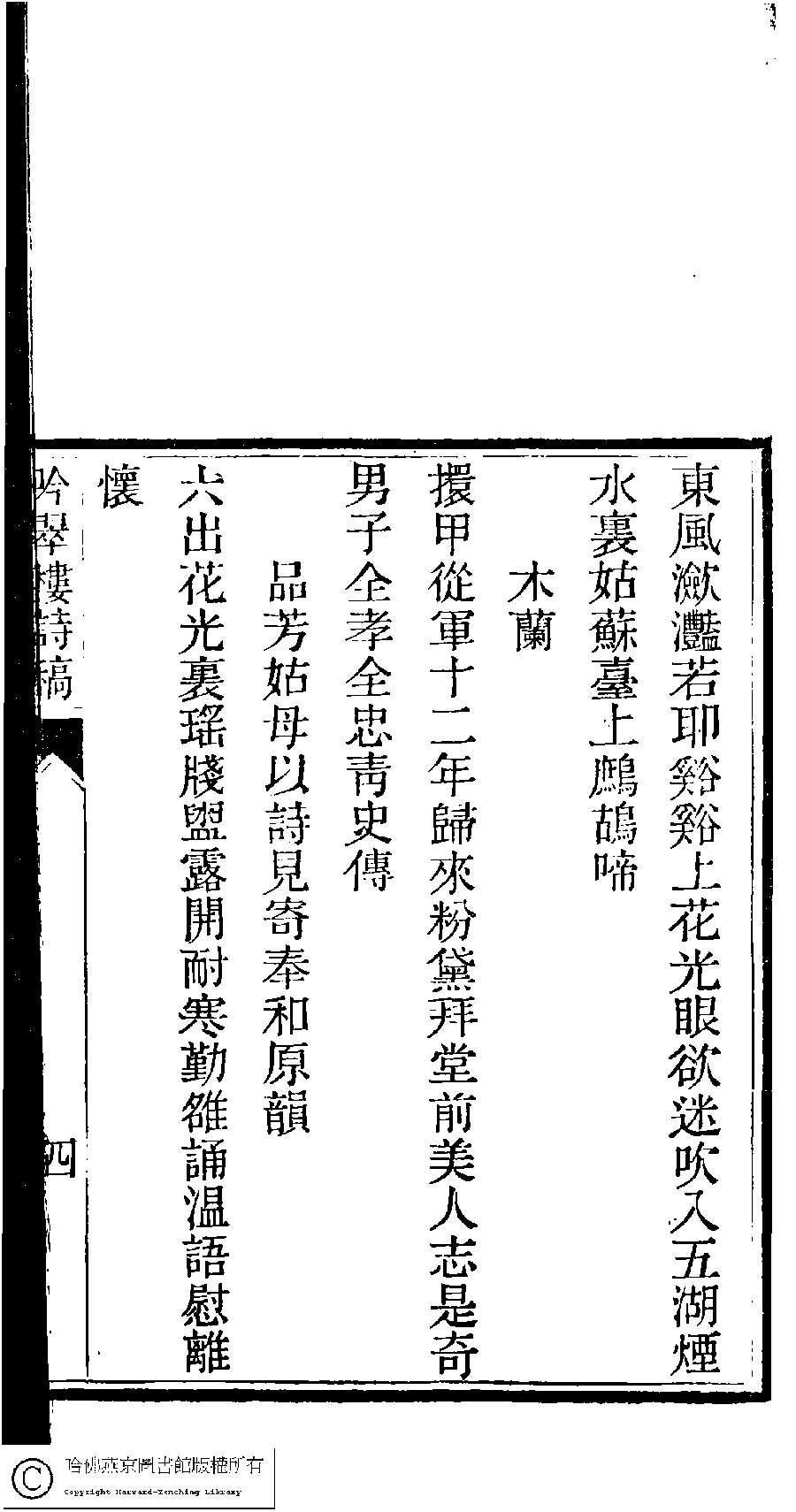 | (PRINT FRIENDLY VERSION) 吟翠樓詩稿﹕一卷﹐附刻﹕一卷(清孫佩蘭撰)。光緖十四年(1888)刻本。 ![]() 頁碼 : 4a | 点 击 放 大 | 吟翠樓詩稿﹕一卷﹐附刻﹕一卷(清孫佩蘭撰)。光緖十四年(1888)刻本。![]() 頁碼 : 3b | 点 击 放 大 | 返回 |