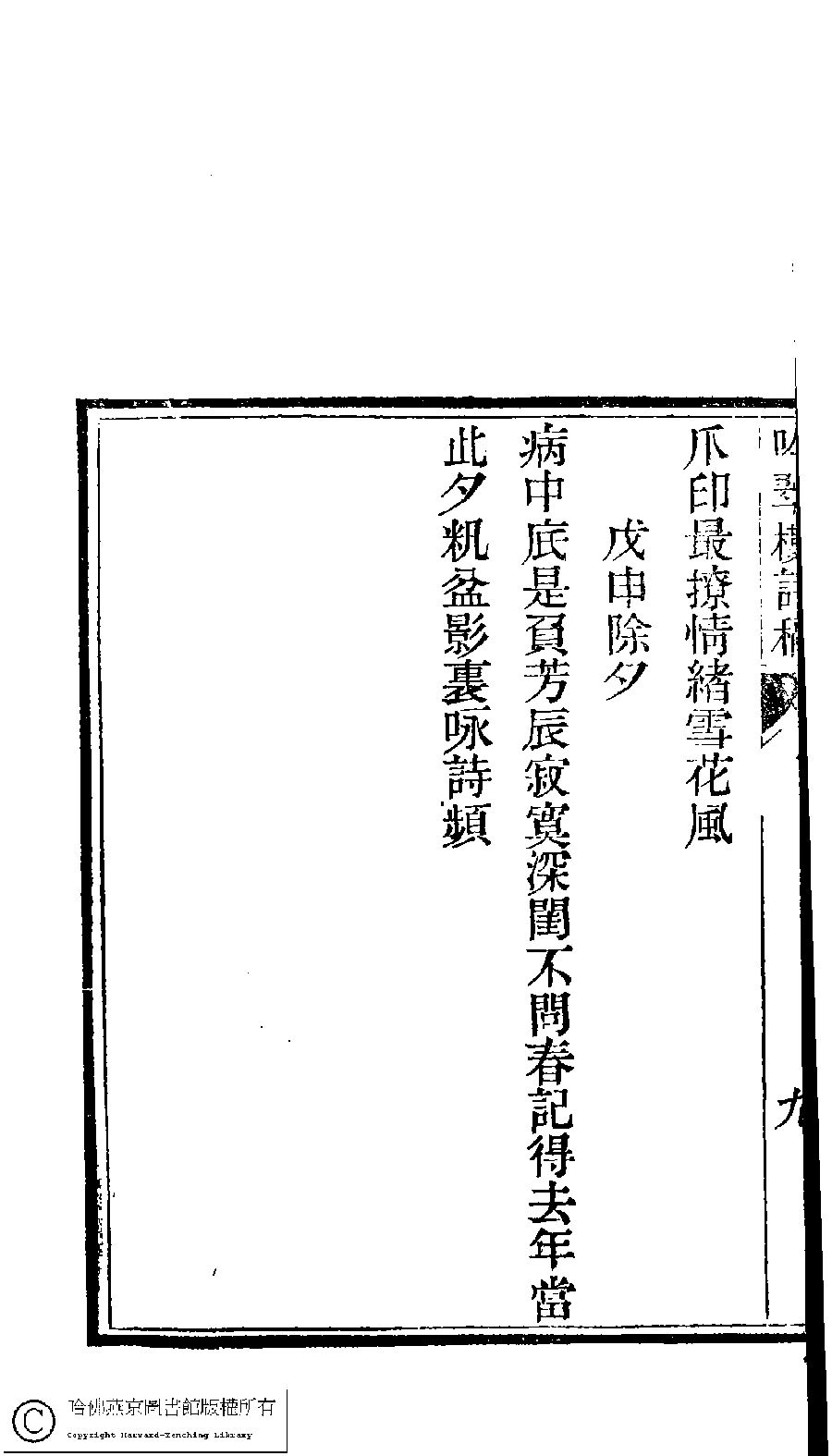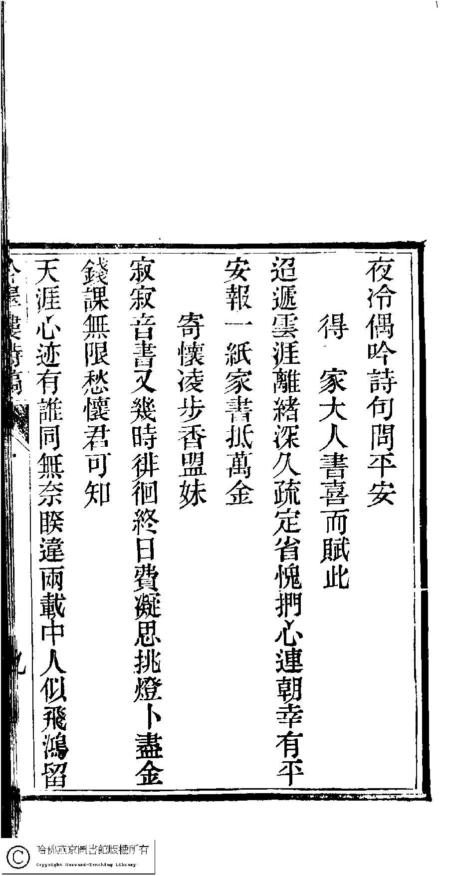 | (PRINT FRIENDLY VERSION) 吟翠樓詩稿﹕一卷﹐附刻﹕一卷(清孫佩蘭撰)。光緖十四年(1888)刻本。 ![]() 頁碼 : 9b | 点 击 放 大 | 吟翠樓詩稿﹕一卷﹐附刻﹕一卷(清孫佩蘭撰)。光緖十四年(1888)刻本。![]() 頁碼 : 9a | 点 击 放 大 | 返回 |