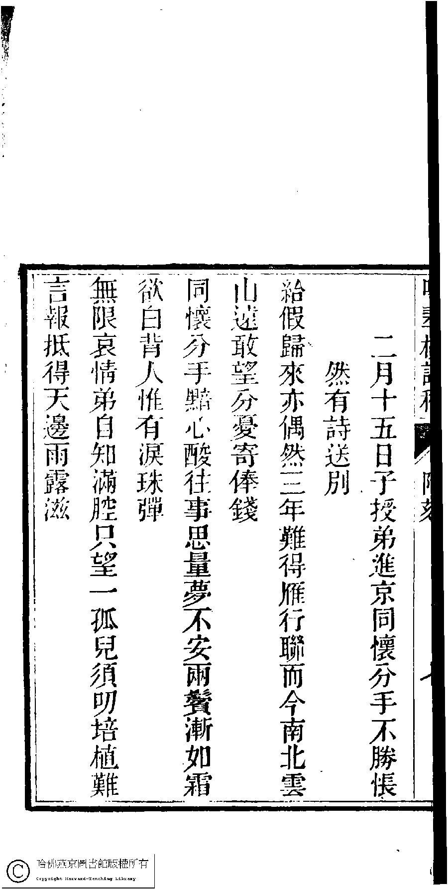詩詞 [二月十五日子授弟進京同懷分手不勝悵然有詩送別(四首)]