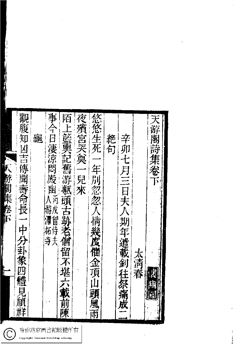 天游閣詩集﹕二卷(清顧太清撰)。清宣統元年(1909)刻本。
