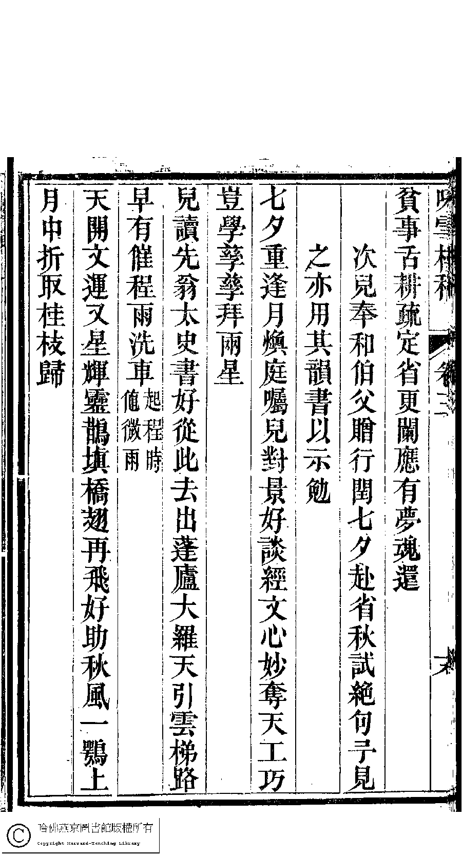 詩詞 [次兒奉和伯父贈行閏七夕赴省秋試絕句予見之亦用其韻書以示勉(三首)]