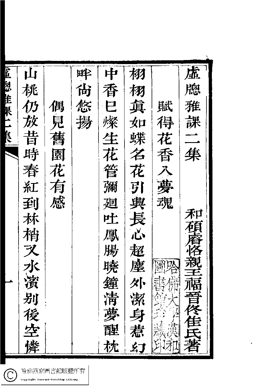 虛窻雅課﹕二集(清佟佳氏撰)。清嘉慶十年(1805)刻本