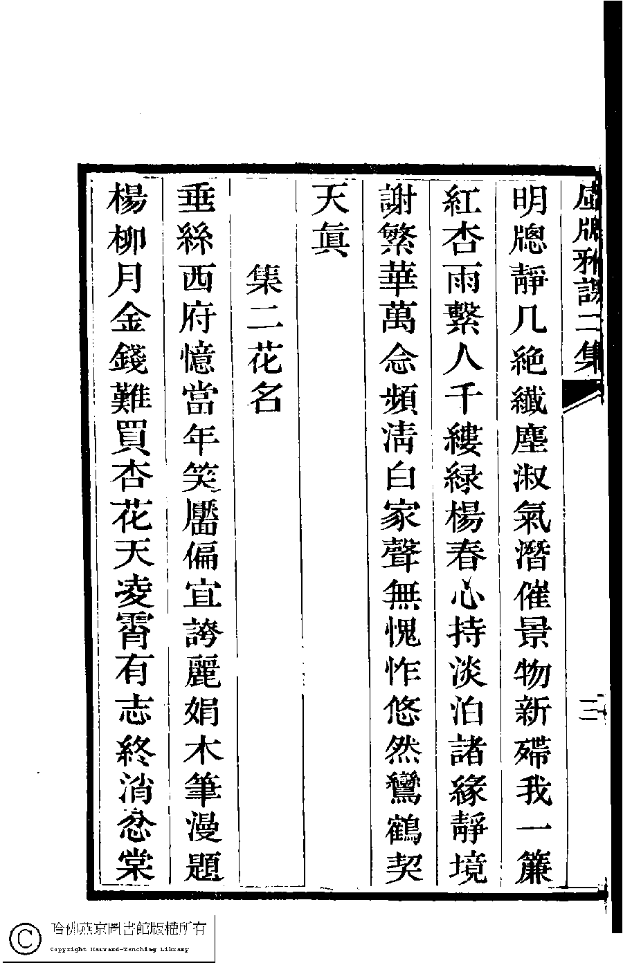 | (PRINT FRIENDLY VERSION) 虛窻雅課﹕二集(清佟佳氏撰)。清嘉慶十年(1805)刻本 ![]() 頁碼 : 2.4a | 点 击 放 大 | 虛窻雅課﹕二集(清佟佳氏撰)。清嘉慶十年(1805)刻本![]() 頁碼 : 2.3b | 点 击 放 大 | 返回 |