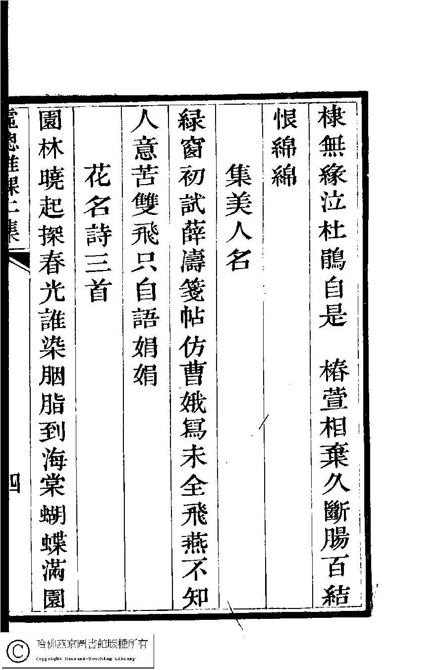 | (PRINT FRIENDLY VERSION) 虛窻雅課﹕二集(清佟佳氏撰)。清嘉慶十年(1805)刻本 ![]() 頁碼 : 2.4a | 点 击 放 大 | 返回 |