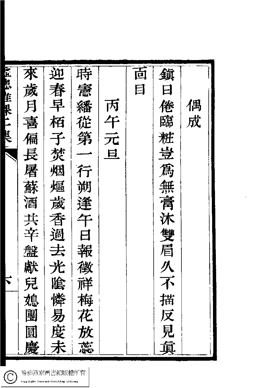 | (PRINT FRIENDLY VERSION) 虛窻雅課﹕二集(清佟佳氏撰)。清嘉慶十年(1805)刻本 ![]() 頁碼 : 2.6b | 点 击 放 大 | 虛窻雅課﹕二集(清佟佳氏撰)。清嘉慶十年(1805)刻本![]() 頁碼 : 2.6a | 点 击 放 大 | 返回 |