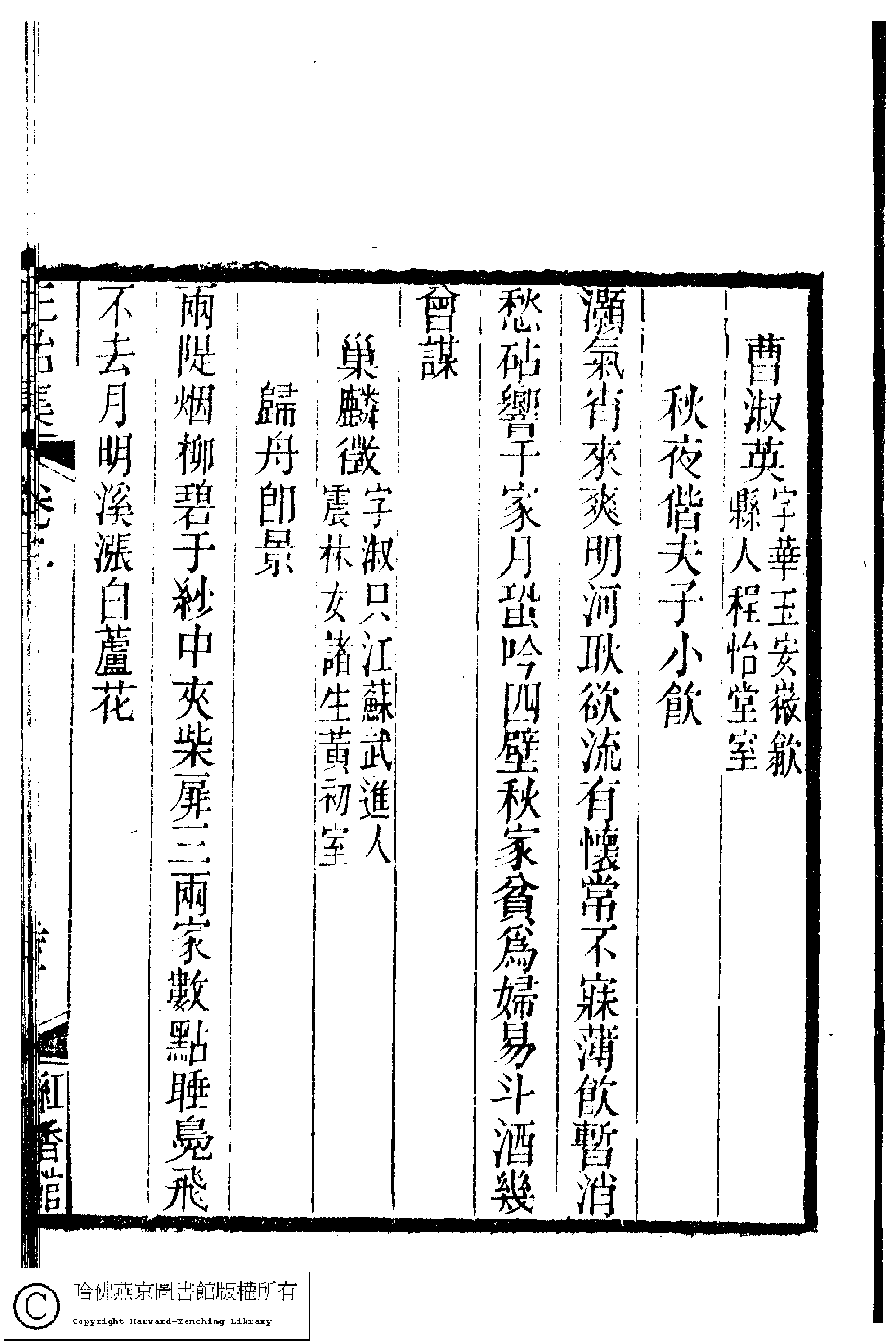 | 原書: 國朝閨秀正始集﹕二十卷﹐附錄﹕一卷﹐補遺﹕一卷﹐又附題詞﹕一卷(清惲珠輯) |