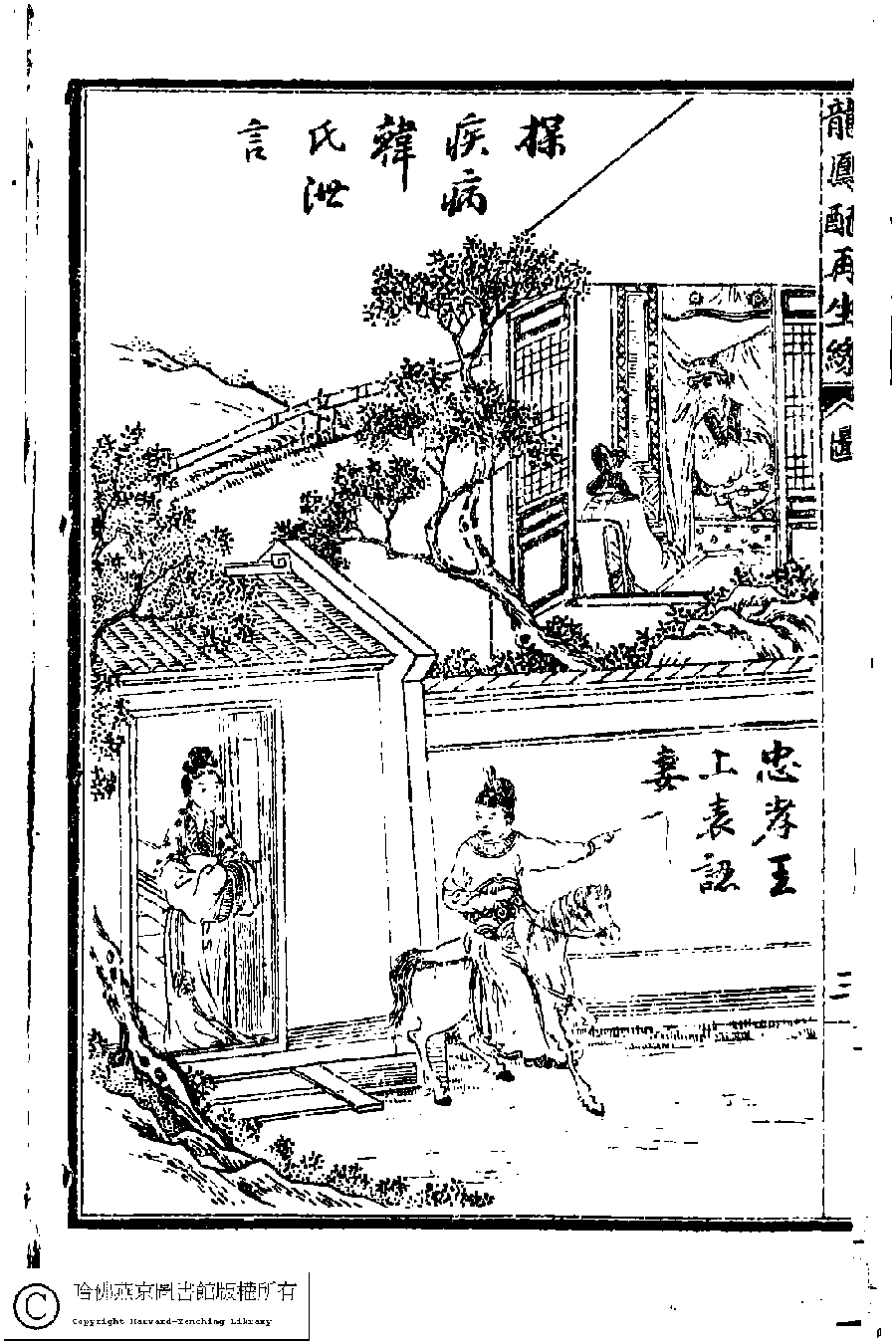 詩詞 [繪圖龍鳳配再生緣插圖(探疾病韓氏泄言 忠孝王上表認妻)]