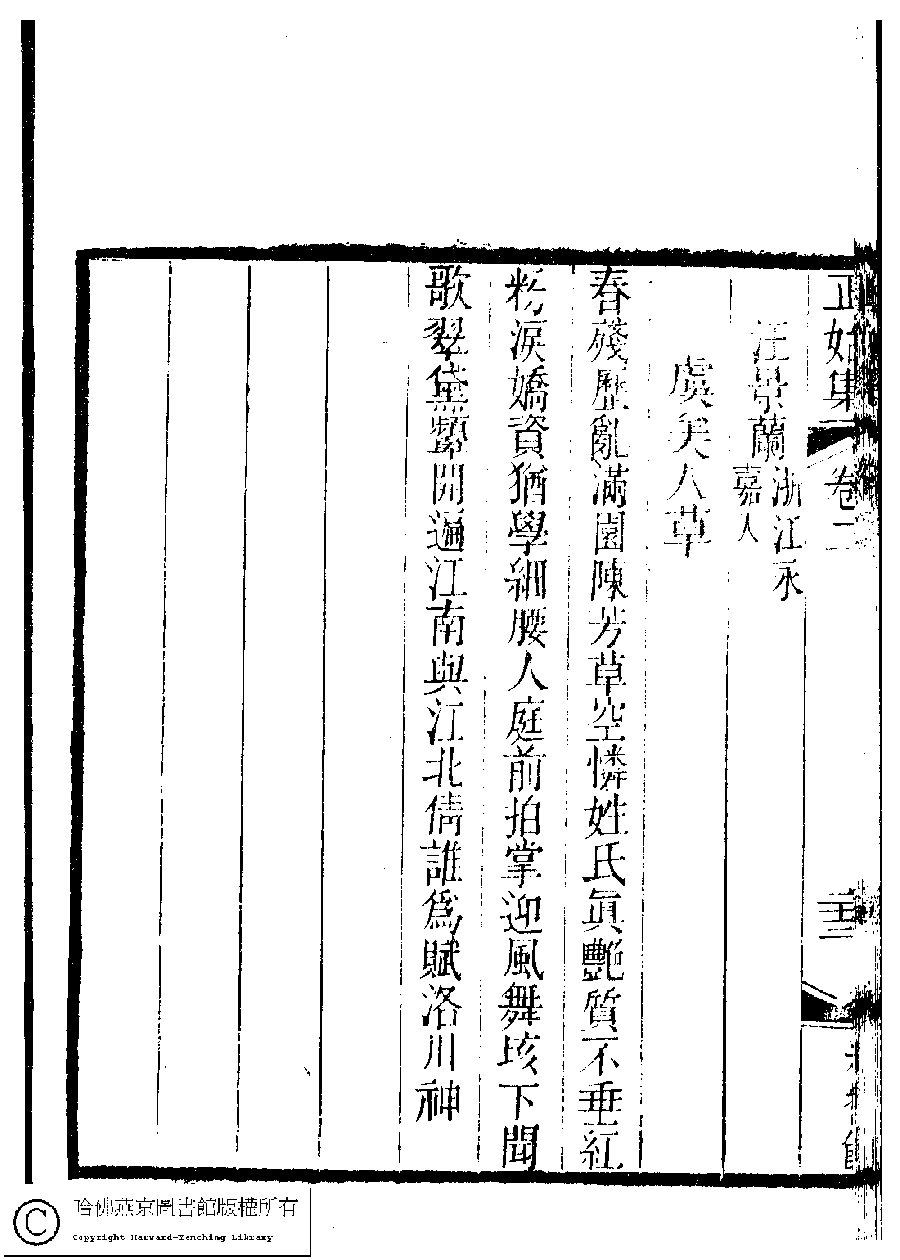 | 原書: 國朝閨秀正始集﹕二十卷﹐附錄﹕一卷﹐補遺﹕一卷﹐又附題詞﹕一卷(清惲珠輯) |