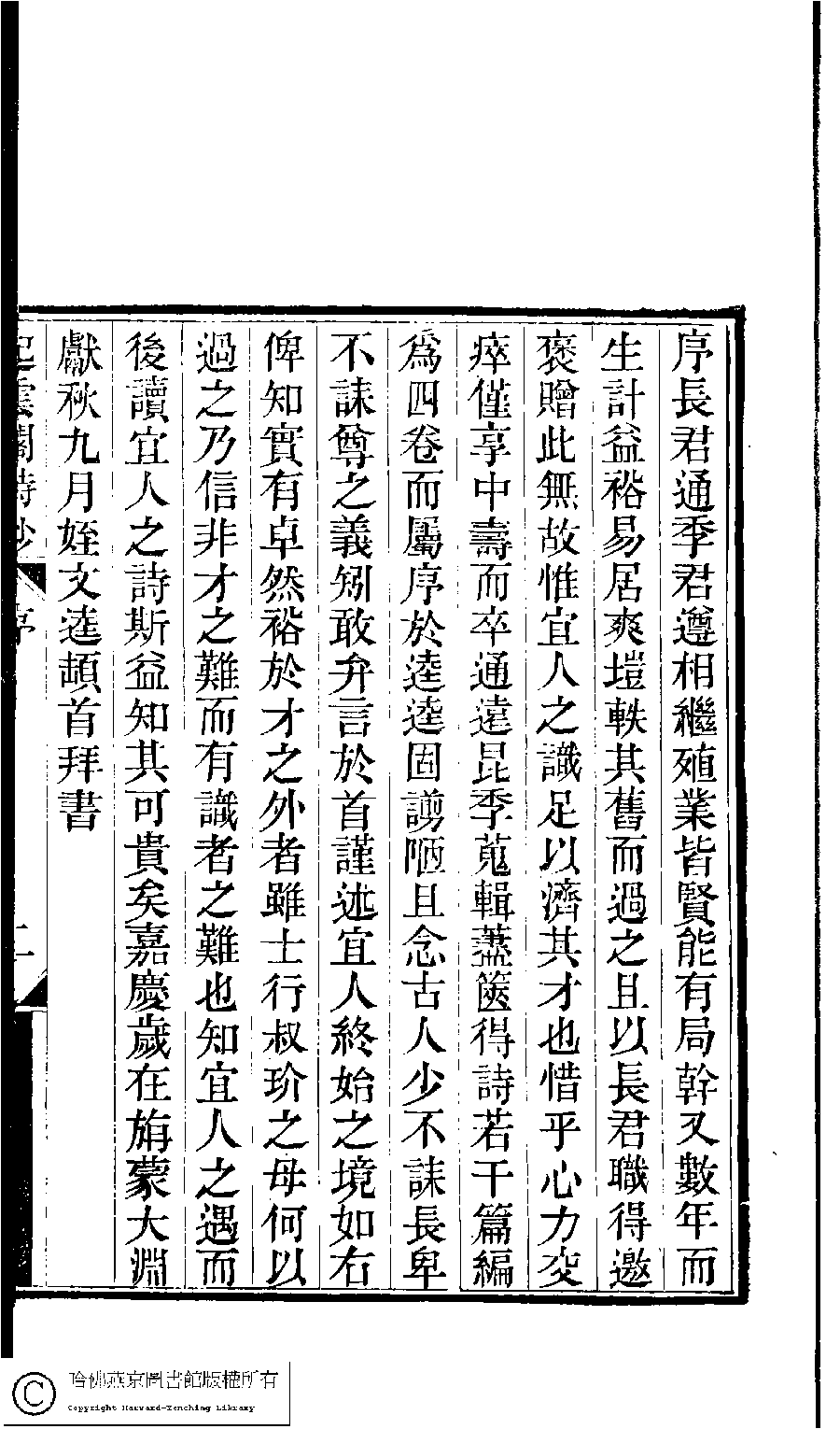| (PRINT FRIENDLY VERSION) 京江鮑氏三女史詩鈔合刻(清戴燮元輯) : 起雲閣詩鈔。清光緖八年(1882) 刻本。 ![]() 頁碼 : 序.2b | 点 击 放 大 | 京江鮑氏三女史詩鈔合刻(清戴燮元輯) : 起雲閣詩鈔。清光緖八年(1882) 刻本。![]() 頁碼 : 序.2a | 点 击 放 大 | 京江鮑氏三女史詩鈔合刻(清戴燮元輯) : 起雲閣詩鈔。清光緖八年(1882) 刻本。![]() 頁碼 : 序.1b | 点 击 放 大 | 京江鮑氏三女史詩鈔合刻(清戴燮元輯) : 起雲閣詩鈔。清光緖八年(1882) 刻本。![]() 頁碼 : 序.1a | 点 击 放 大 | 返回 |