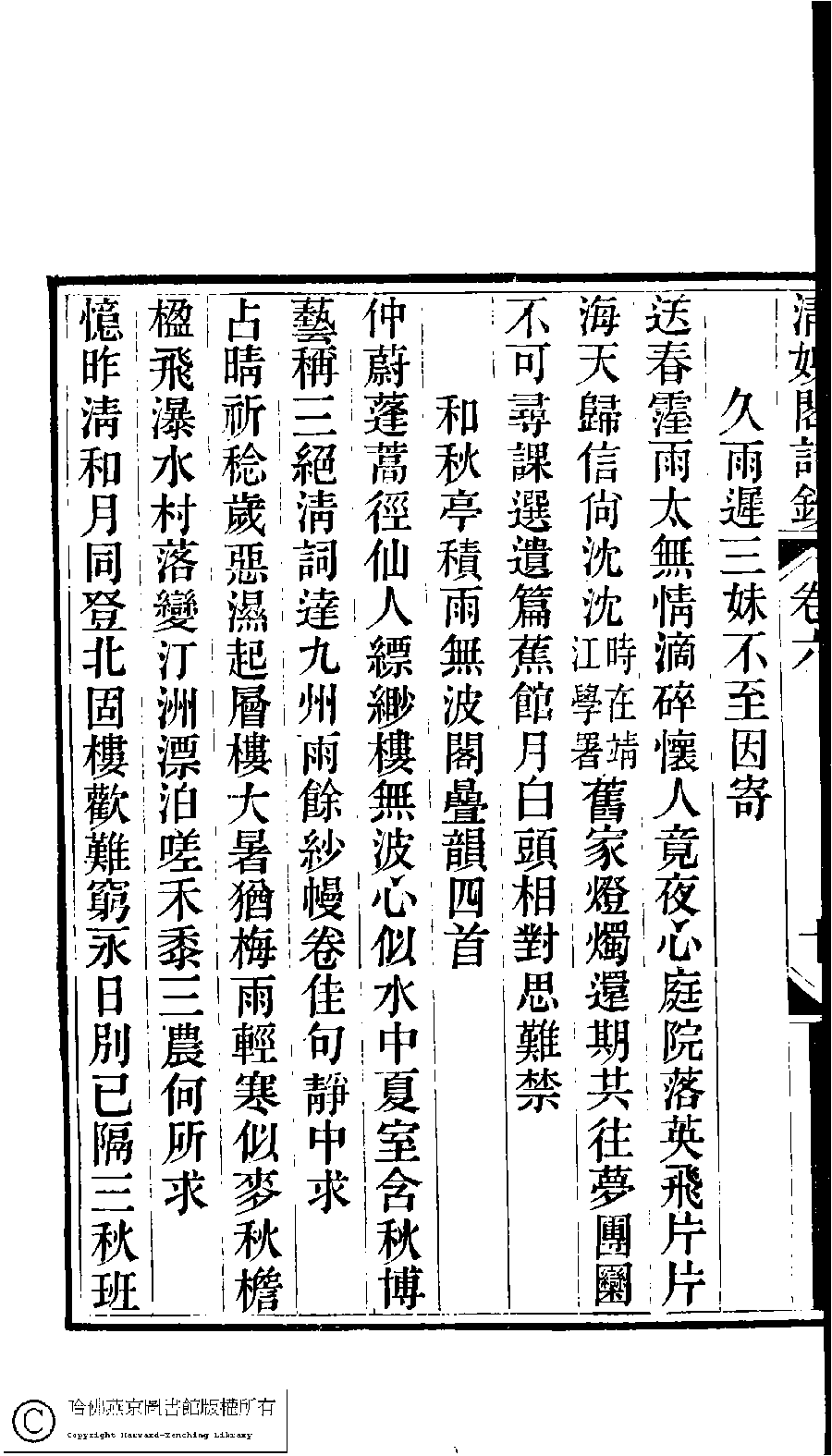 | 原書: 京江鮑氏三女史詩鈔合刻(清戴燮元輯): 清娛閣詩鈔 |