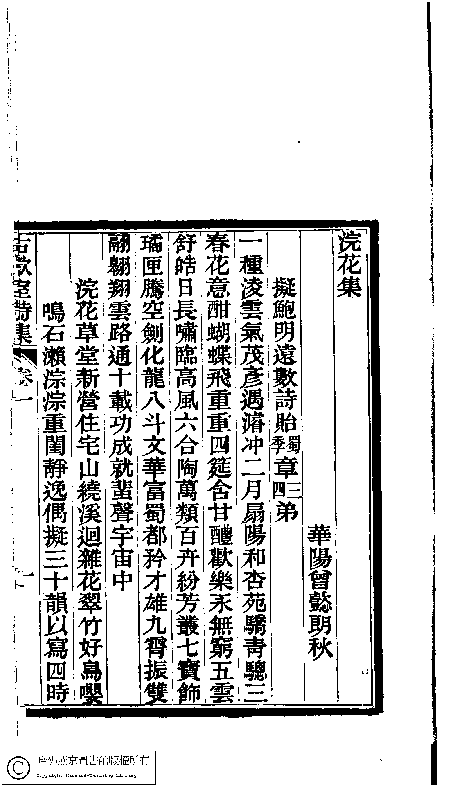 | (PRINT FRIENDLY VERSION) 古歡室集:詩三卷,詞一卷,醫學篇二卷,女學篇一卷,中饋錄一卷(清曽懿撰)。清光緖三十三年(1907)刻本。 ![]() 頁碼 : 1.1a | 点 击 放 大 | 返回 |
