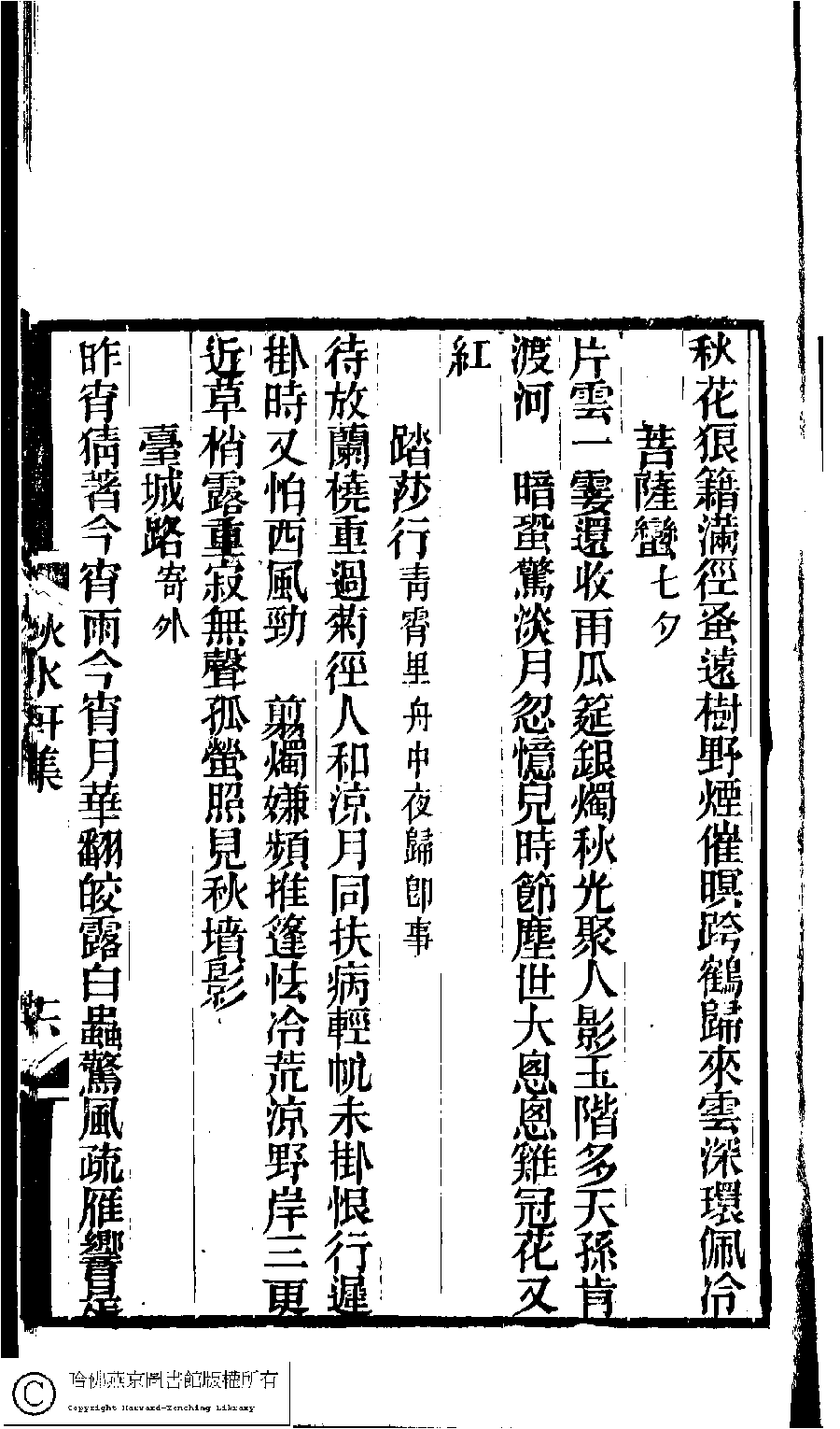 | 原書: 林下雅音集﹕五種(淸冒俊輯): 秋水軒詩詞集: 一卷 |