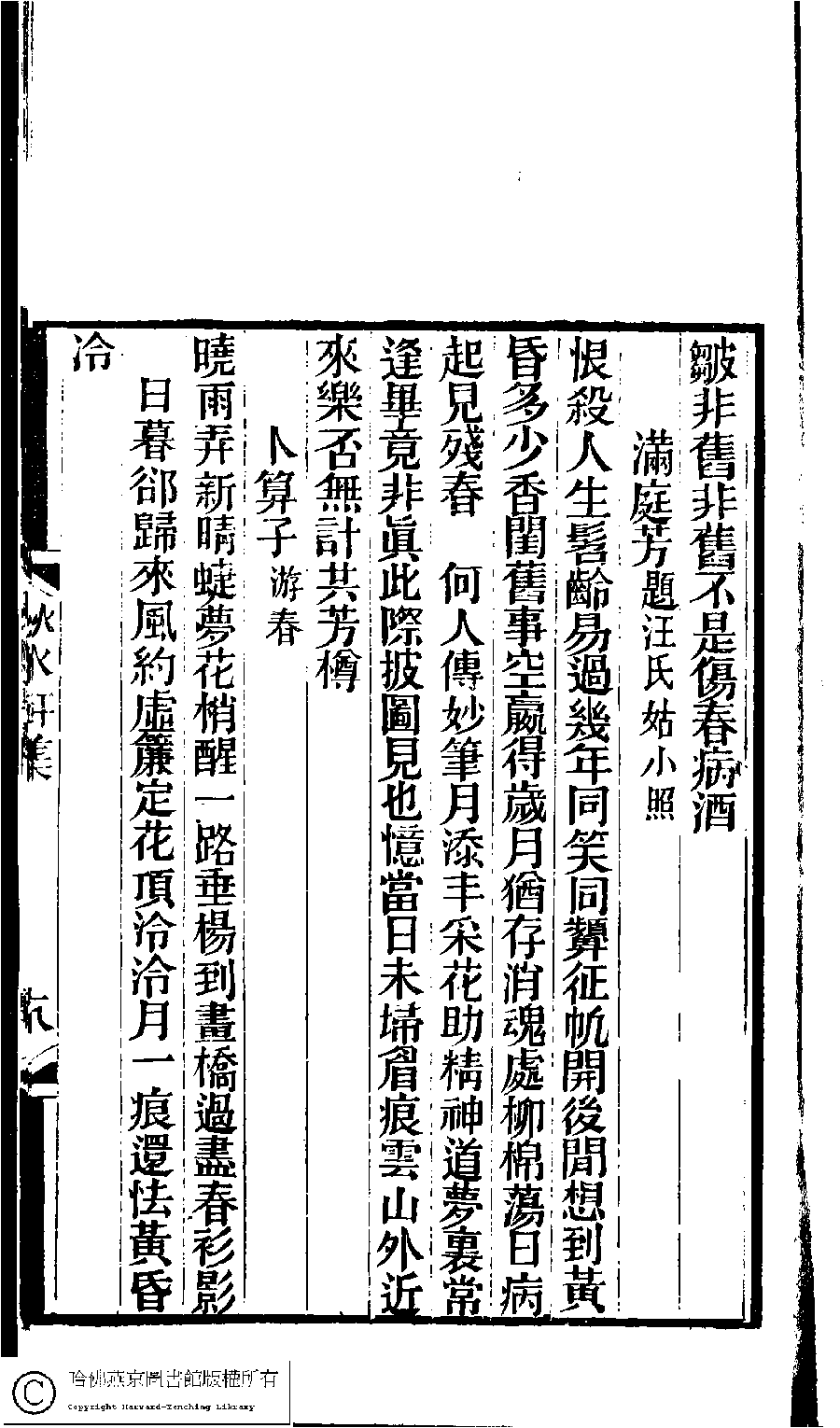 | 原書: 林下雅音集﹕五種(淸冒俊輯): 秋水軒詩詞集: 一卷 |