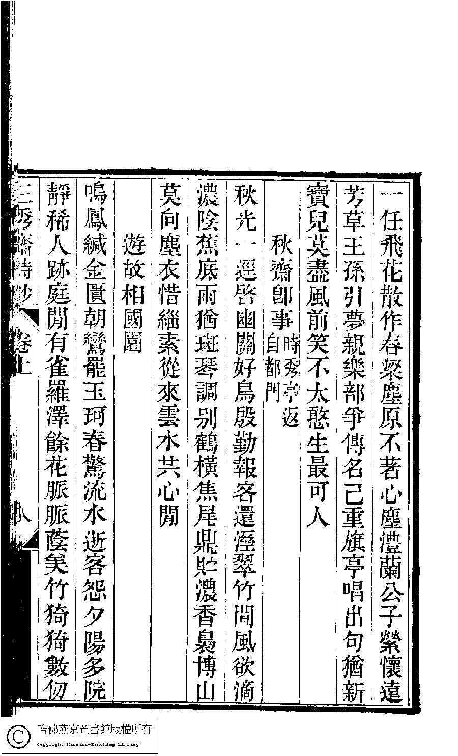 | 原書: 京江鮑氏三女史詩鈔合刻(清戴燮元輯): 三秀齋詩鈔 |