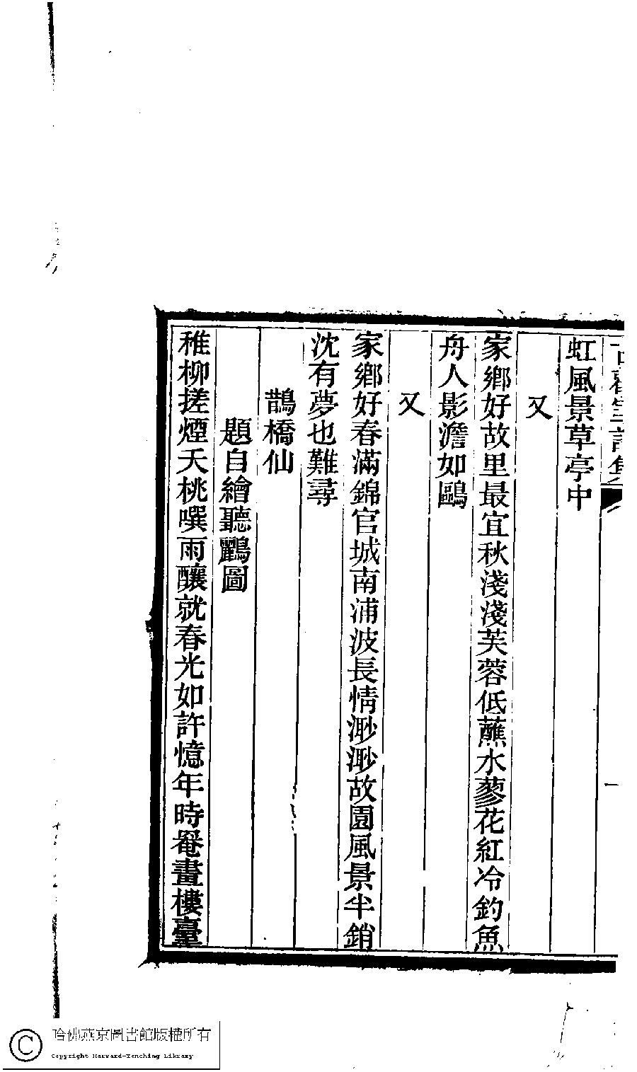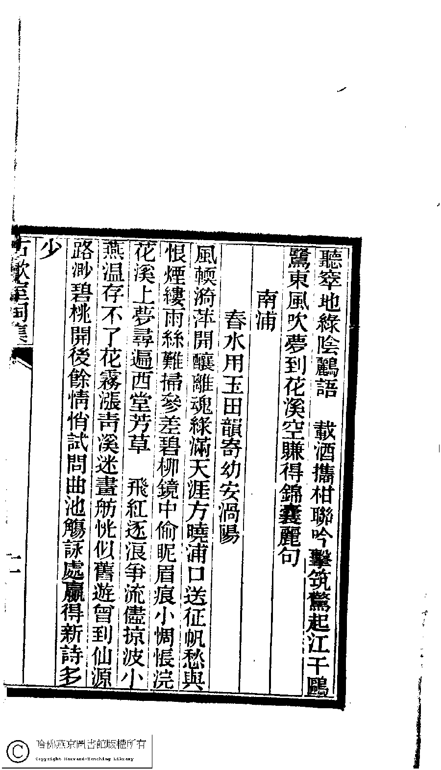 | (PRINT FRIENDLY VERSION) 古歡室集:詩三卷,詞一卷,醫學篇二卷,女學篇一卷,中饋錄一卷(清曽懿撰)。清光緖三十三年(1907)刻本。 ![]() 頁碼 : 詞.11a | 点 击 放 大 | 古歡室集:詩三卷,詞一卷,醫學篇二卷,女學篇一卷,中饋錄一卷(清曽懿撰)。清光緖三十三年(1907)刻本。![]() 頁碼 : 詞.10b | 点 击 放 大 | 返回 |