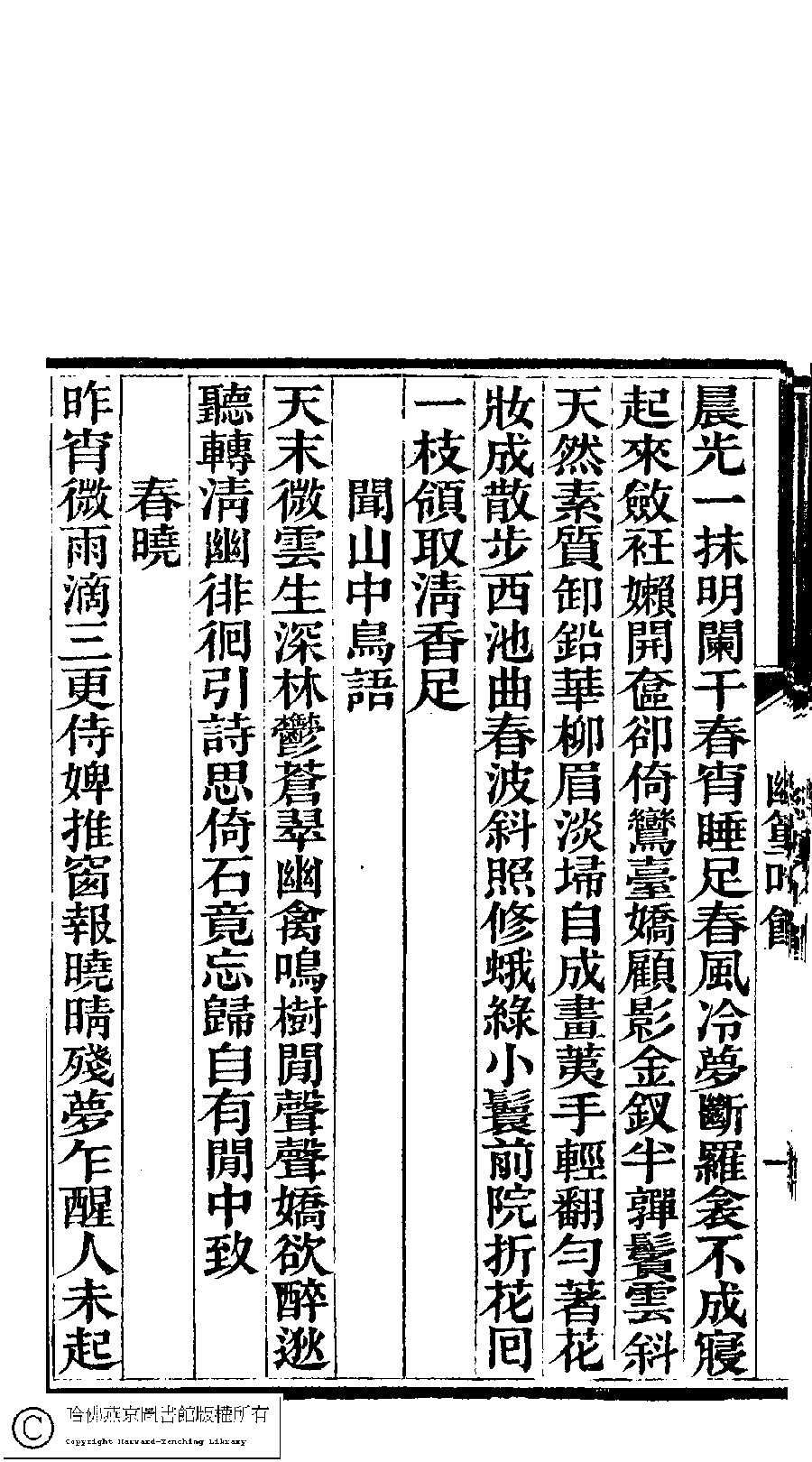 | (PRINT FRIENDLY VERSION) 澹香閣詩鈔:一卷外四種(清李星池等撰) : 幽篁吟館詩鈔﹕一卷(清楊書蕙撰)。清光緖四年(1878)刻本。 ![]() 頁碼 : 3.1b | 点 击 放 大 | 澹香閣詩鈔:一卷外四種(清李星池等撰) : 幽篁吟館詩鈔﹕一卷(清楊書蕙撰)。清光緖四年(1878)刻本。![]() 頁碼 : 3.1a | 点 击 放 大 | 返回 |