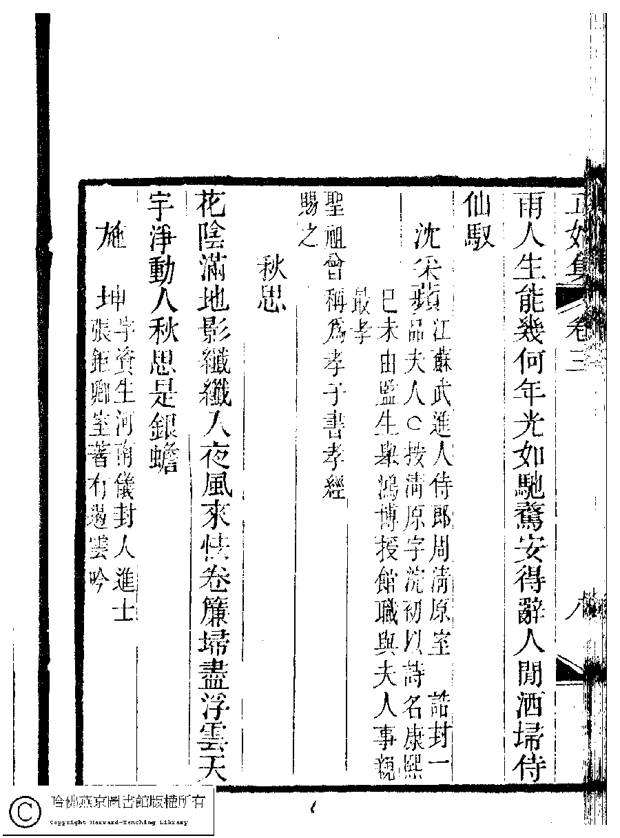 | 原書: 國朝閨秀正始集﹕二十卷﹐附錄﹕一卷﹐補遺﹕一卷﹐又附題詞﹕一卷(清惲珠輯) |