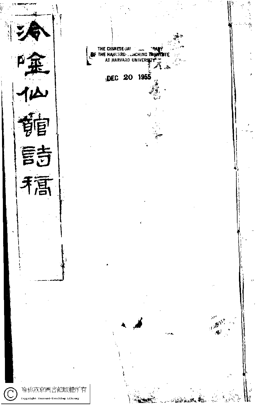 | 原書: 冷吟仙舘詩稿﹕八卷﹐詩餘一卷﹐文存一卷(淸左錫嘉撰) |
