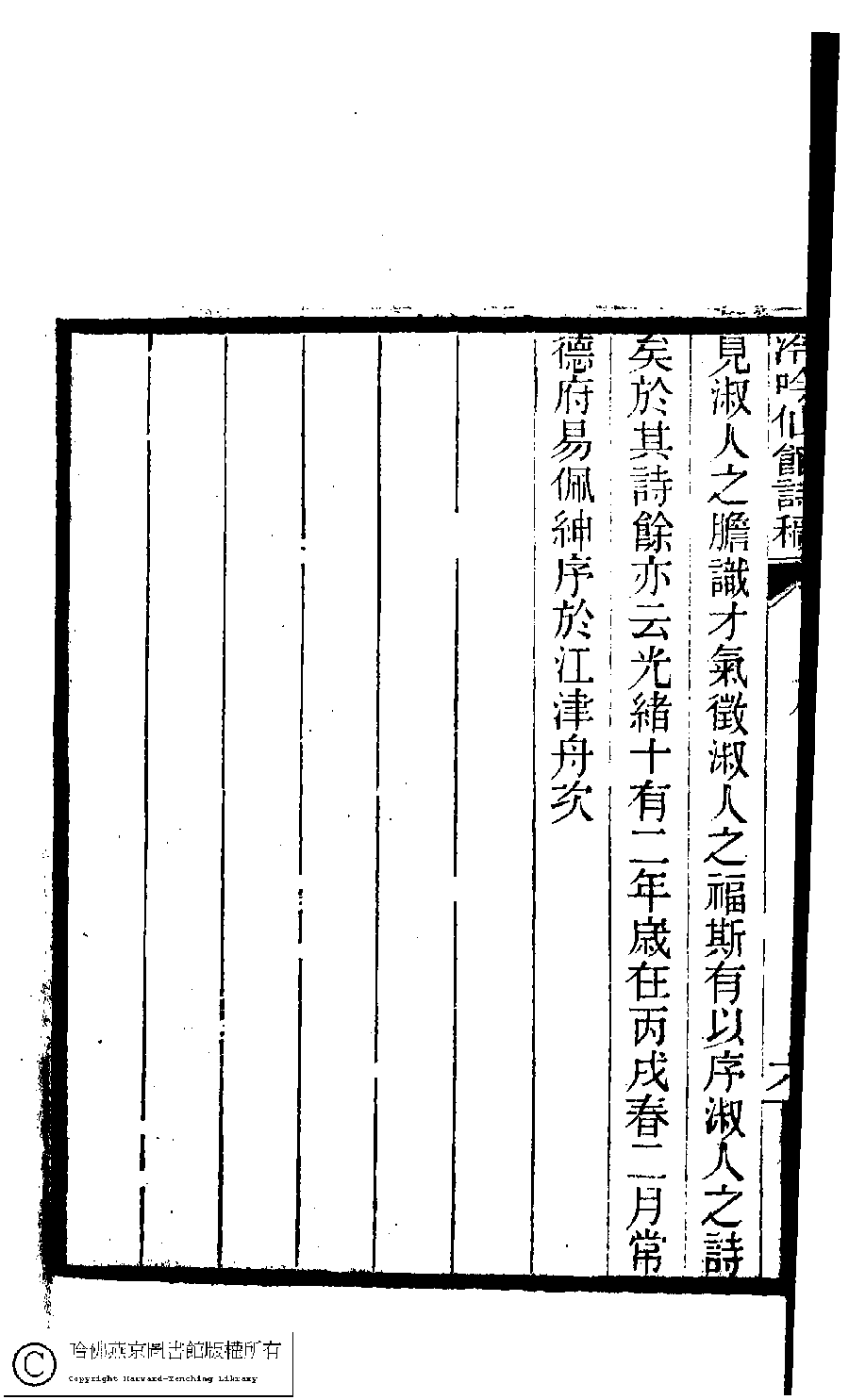 | (PRINT FRIENDLY VERSION) 冷吟仙舘詩稿﹕八卷﹐詩餘一卷﹐文存一卷(淸左錫嘉撰)。淸光緖辛卯(1891)刻本。 ![]() 頁碼 : 序.6b | 点 击 放 大 | 冷吟仙舘詩稿﹕八卷﹐詩餘一卷﹐文存一卷(淸左錫嘉撰)。淸光緖辛卯(1891)刻本。![]() 頁碼 : 序.6a | 点 击 放 大 | 冷吟仙舘詩稿﹕八卷﹐詩餘一卷﹐文存一卷(淸左錫嘉撰)。淸光緖辛卯(1891)刻本。![]() 頁碼 : 序.5b | 点 击 放 大 | 冷吟仙舘詩稿﹕八卷﹐詩餘一卷﹐文存一卷(淸左錫嘉撰)。淸光緖辛卯(1891)刻本。![]() 頁碼 : 序.5a | 点 击 放 大 | 返回 |