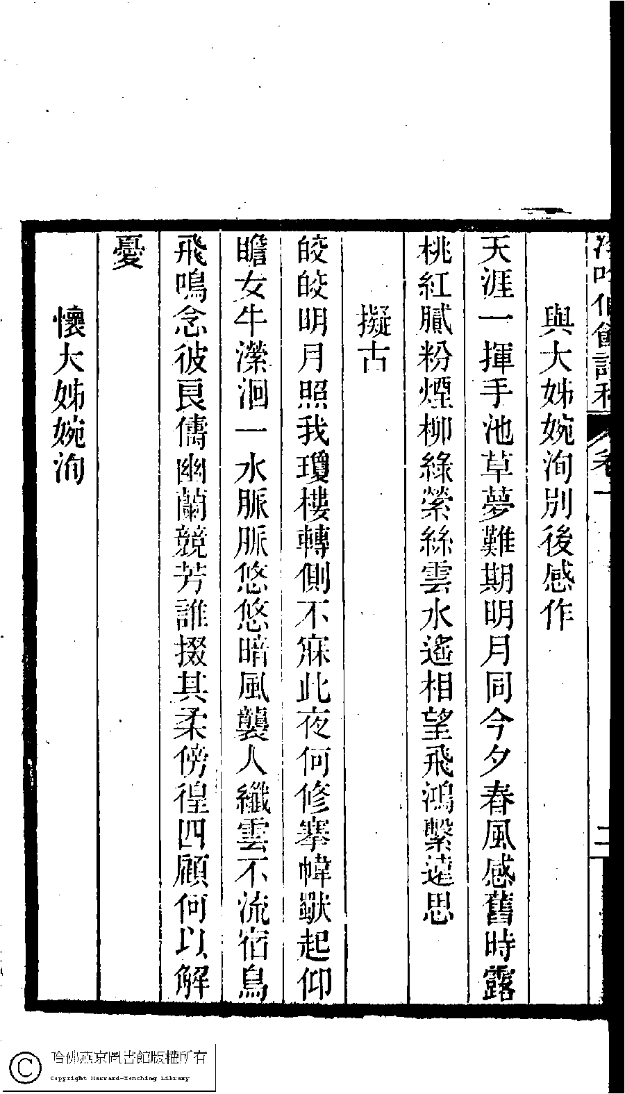 | (PRINT FRIENDLY VERSION) 冷吟仙舘詩稿﹕八卷﹐詩餘一卷﹐文存一卷(淸左錫嘉撰)。淸光緖辛卯(1891)刻本。 ![]() 頁碼 : 1.3a | 点 击 放 大 | 冷吟仙舘詩稿﹕八卷﹐詩餘一卷﹐文存一卷(淸左錫嘉撰)。淸光緖辛卯(1891)刻本。![]() 頁碼 : 1.2b | 点 击 放 大 | 返回 |