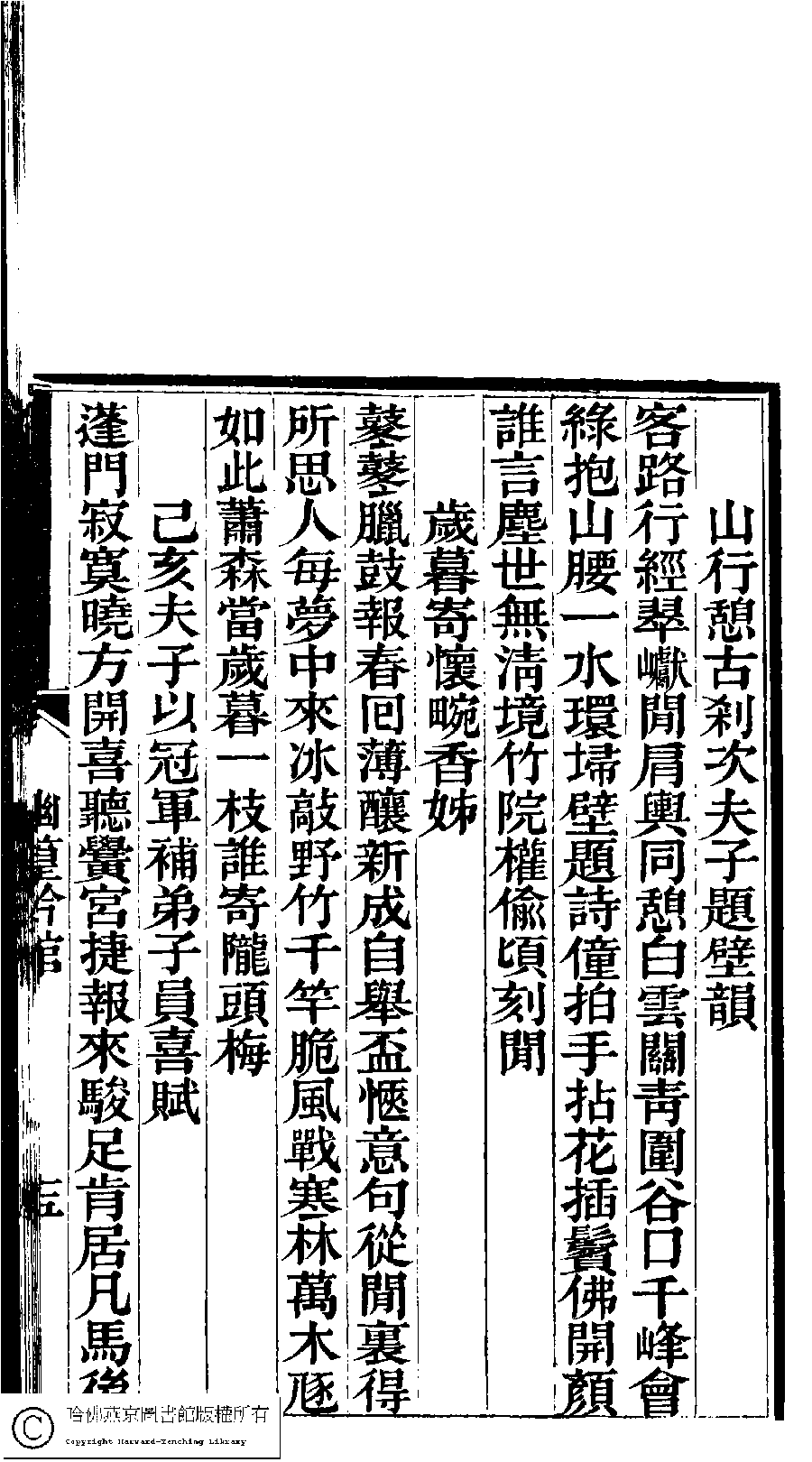 | (PRINT FRIENDLY VERSION) 澹香閣詩鈔:一卷外四種(清李星池等撰) : 幽篁吟館詩鈔﹕一卷(清楊書蕙撰)。清光緖四年(1878)刻本。 ![]() 頁碼 : 3.15a | 点 击 放 大 | 返回 |