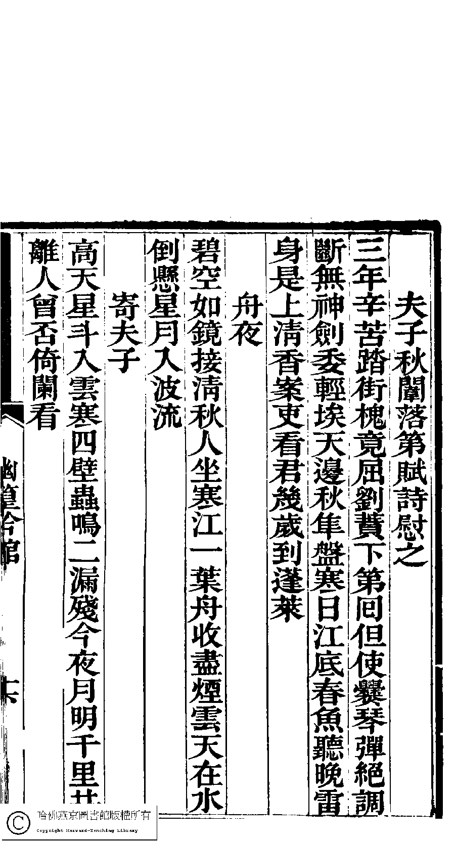 | (PRINT FRIENDLY VERSION) 澹香閣詩鈔:一卷外四種(清李星池等撰) : 幽篁吟館詩鈔﹕一卷(清楊書蕙撰)。清光緖四年(1878)刻本。 ![]() 頁碼 : 3.16a | 点 击 放 大 | 返回 |
