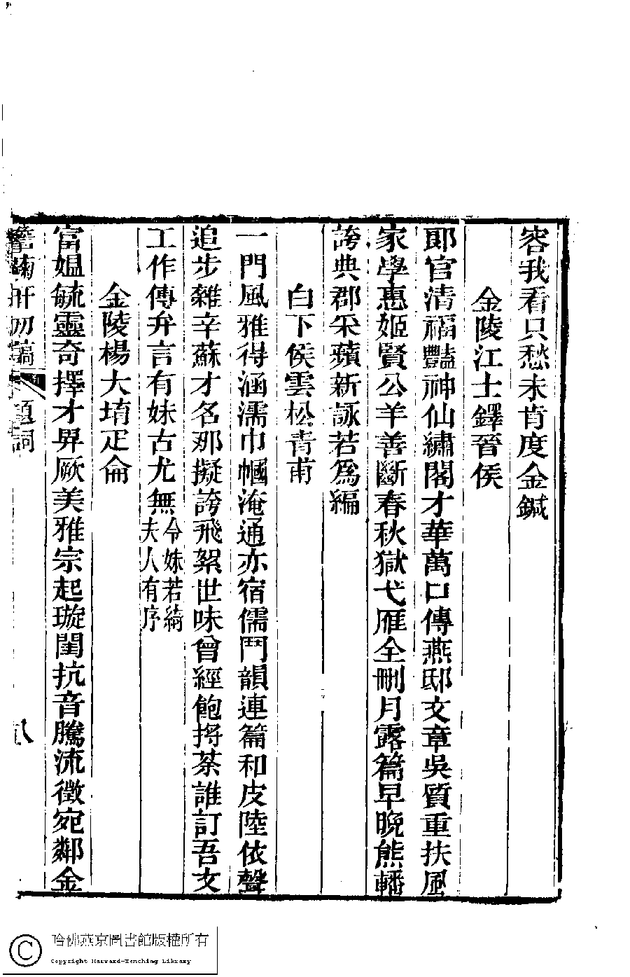 | (PRINT FRIENDLY VERSION) 澹蘜軒詩初稿﹕四卷﹐詞﹕一卷(清張䌌英撰)。道光二十年(1840)刻本。 ![]() 頁碼 : 題詞.8a | 点 击 放 大 | 澹蘜軒詩初稿﹕四卷﹐詞﹕一卷(清張䌌英撰)。道光二十年(1840)刻本。![]() 頁碼 : 題詞.7b | 点 击 放 大 | 返回 |