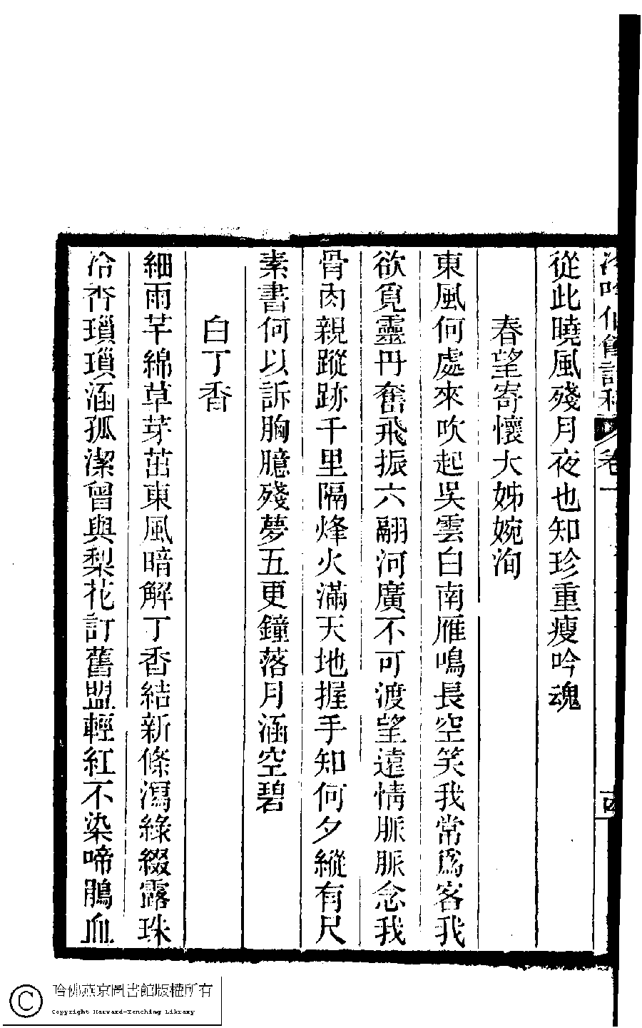 | 原書: 冷吟仙舘詩稿﹕八卷﹐詩餘一卷﹐文存一卷(淸左錫嘉撰) |