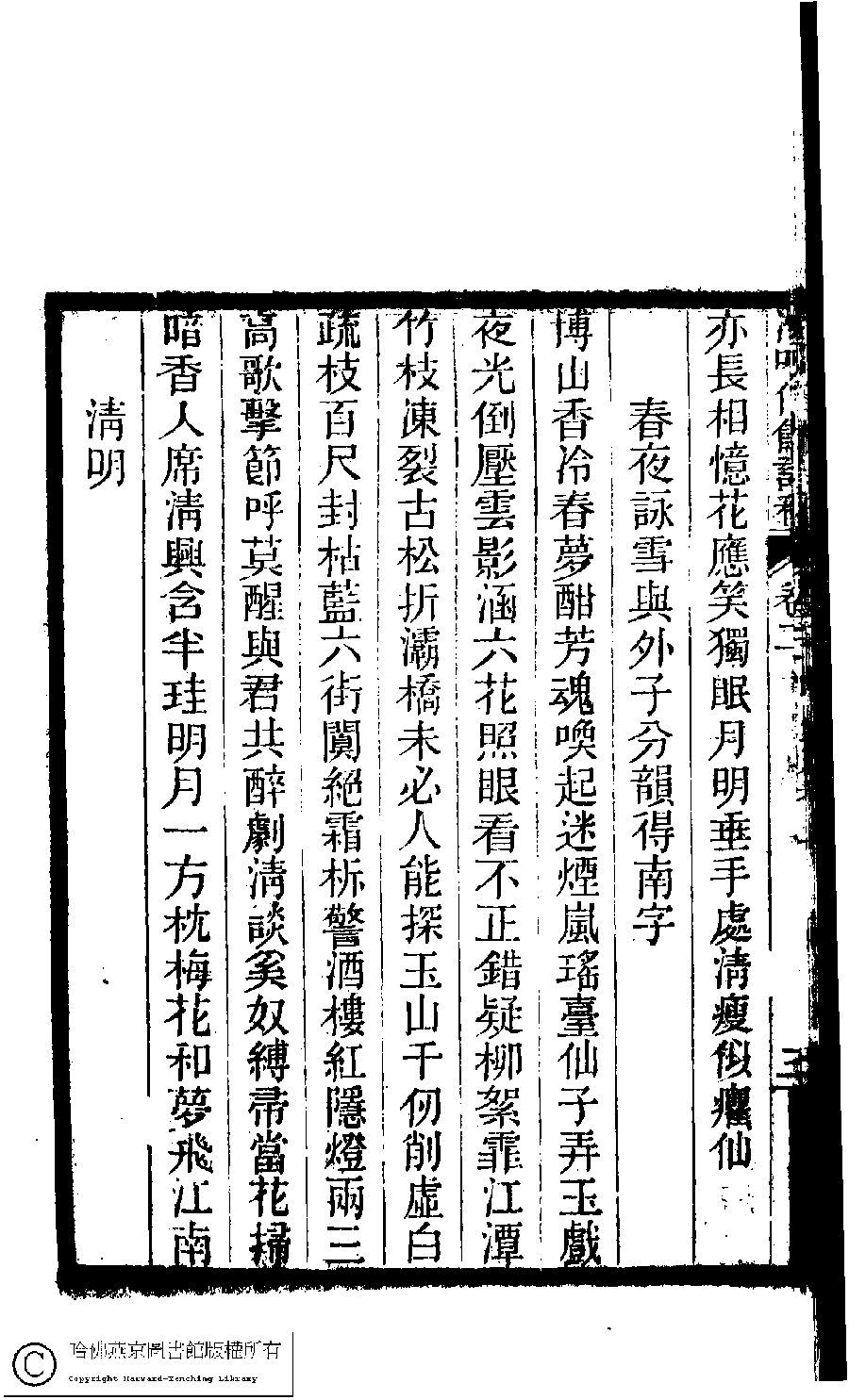 | (PRINT FRIENDLY VERSION) 冷吟仙舘詩稿﹕八卷﹐詩餘一卷﹐文存一卷(淸左錫嘉撰)。淸光緖辛卯(1891)刻本。 ![]() 頁碼 : 2.3b | 点 击 放 大 | 冷吟仙舘詩稿﹕八卷﹐詩餘一卷﹐文存一卷(淸左錫嘉撰)。淸光緖辛卯(1891)刻本。![]() 頁碼 : 2.3a | 点 击 放 大 | 返回 |