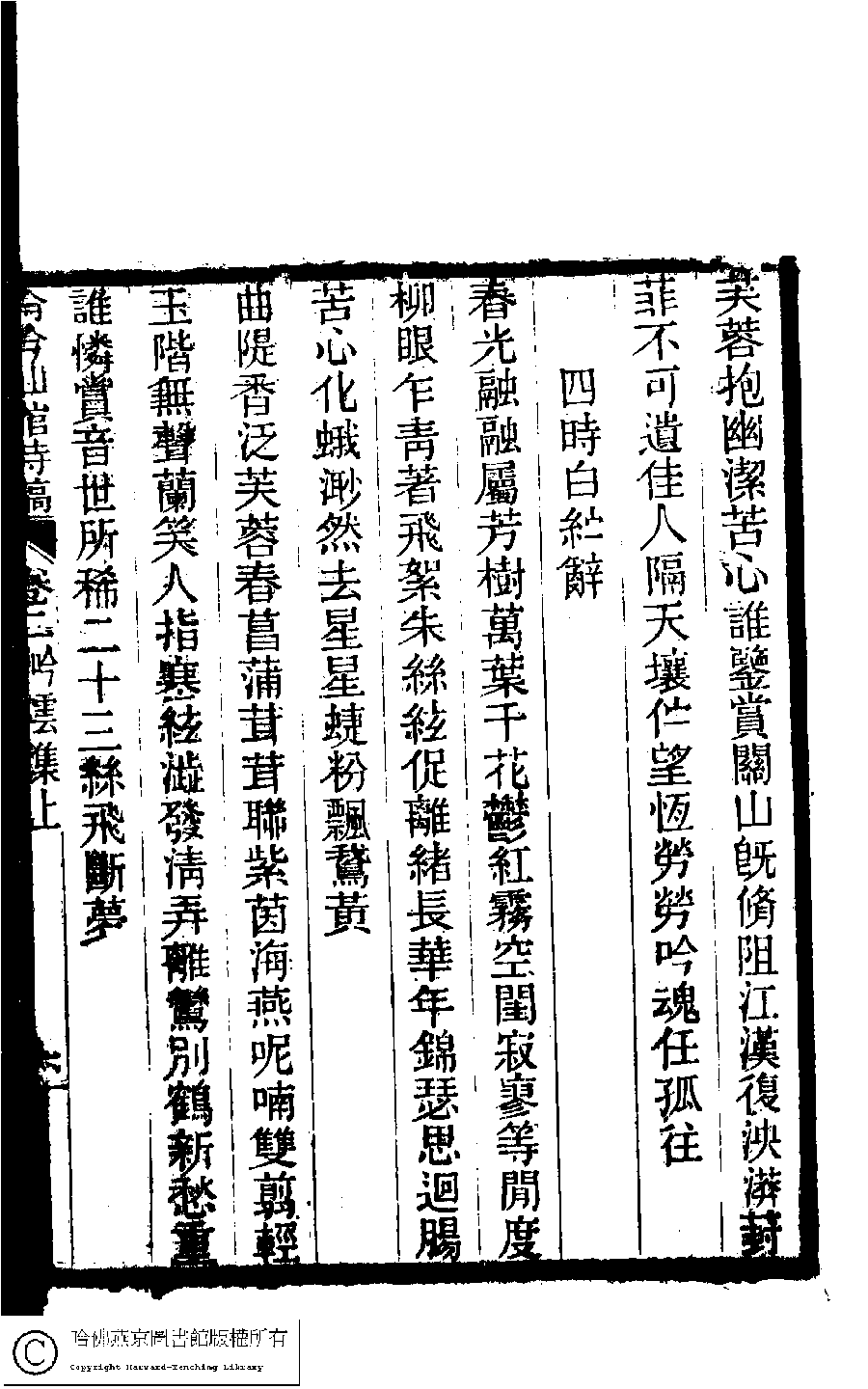 | 原書: 冷吟仙舘詩稿﹕八卷﹐詩餘一卷﹐文存一卷(淸左錫嘉撰) |