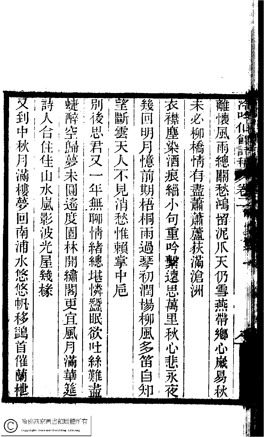 | 原書: 冷吟仙舘詩稿﹕八卷﹐詩餘一卷﹐文存一卷(淸左錫嘉撰) |