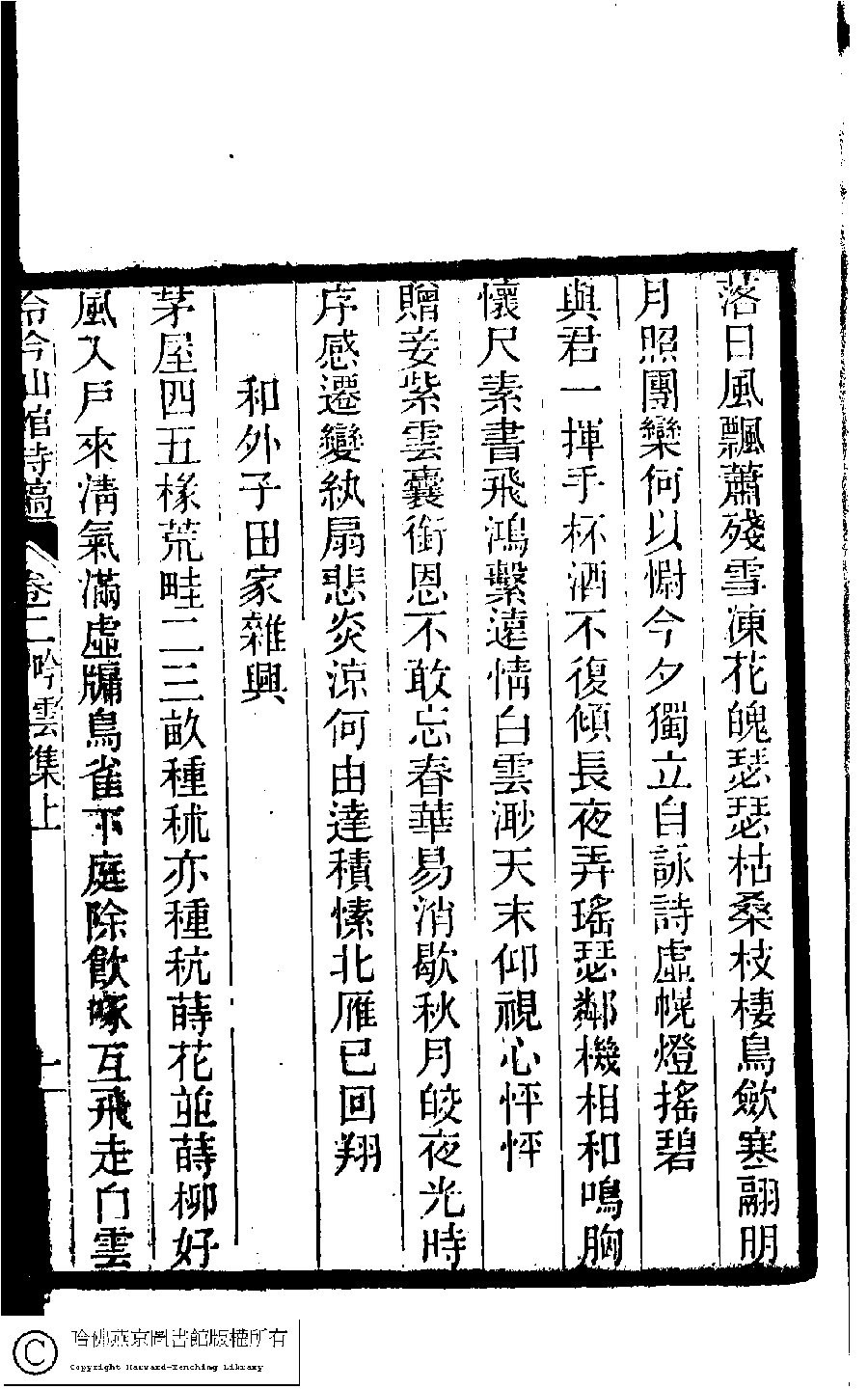 | 原書: 冷吟仙舘詩稿﹕八卷﹐詩餘一卷﹐文存一卷(淸左錫嘉撰) |