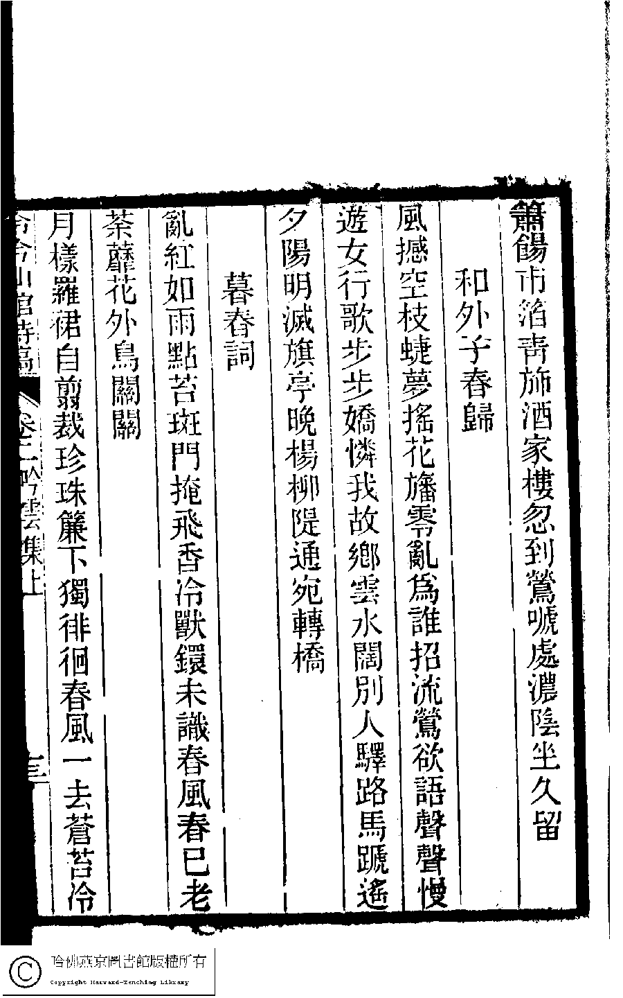 | 原書: 冷吟仙舘詩稿﹕八卷﹐詩餘一卷﹐文存一卷(淸左錫嘉撰) |
