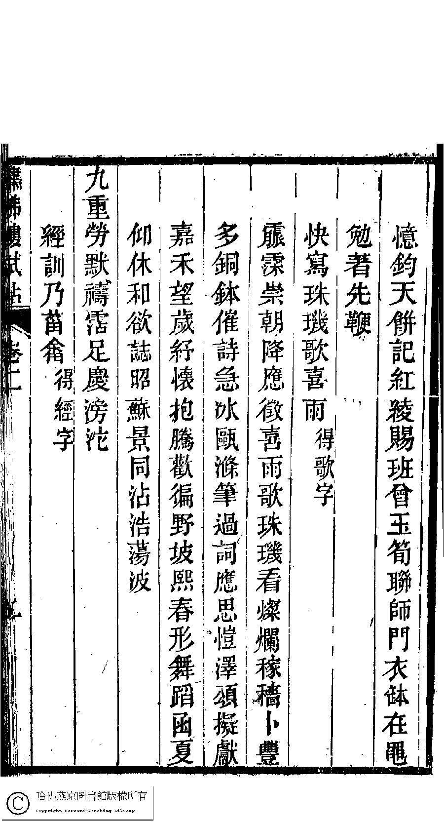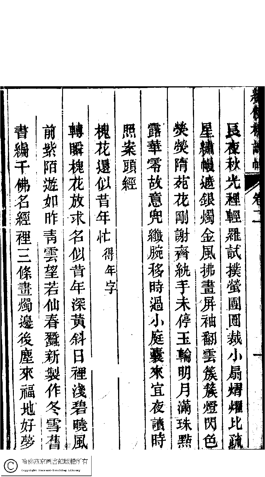 | (PRINT FRIENDLY VERSION) 繡佛樓詩稿﹕二卷(清錢守璞撰)。清同治八年(1869)刻本。 ![]() 頁碼 : 試帖2.2a | 点 击 放 大 | 繡佛樓詩稿﹕二卷(清錢守璞撰)。清同治八年(1869)刻本。![]() 頁碼 : 試帖2.1b | 点 击 放 大 | 返回 |
