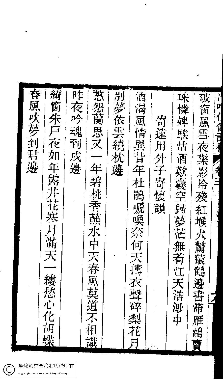 | (PRINT FRIENDLY VERSION) 冷吟仙舘詩稿﹕八卷﹐詩餘一卷﹐文存一卷(淸左錫嘉撰)。淸光緖辛卯(1891)刻本。 ![]() 頁碼 : 3.19a | 点 击 放 大 | 冷吟仙舘詩稿﹕八卷﹐詩餘一卷﹐文存一卷(淸左錫嘉撰)。淸光緖辛卯(1891)刻本。![]() 頁碼 : 3.18b | 点 击 放 大 | 返回 |