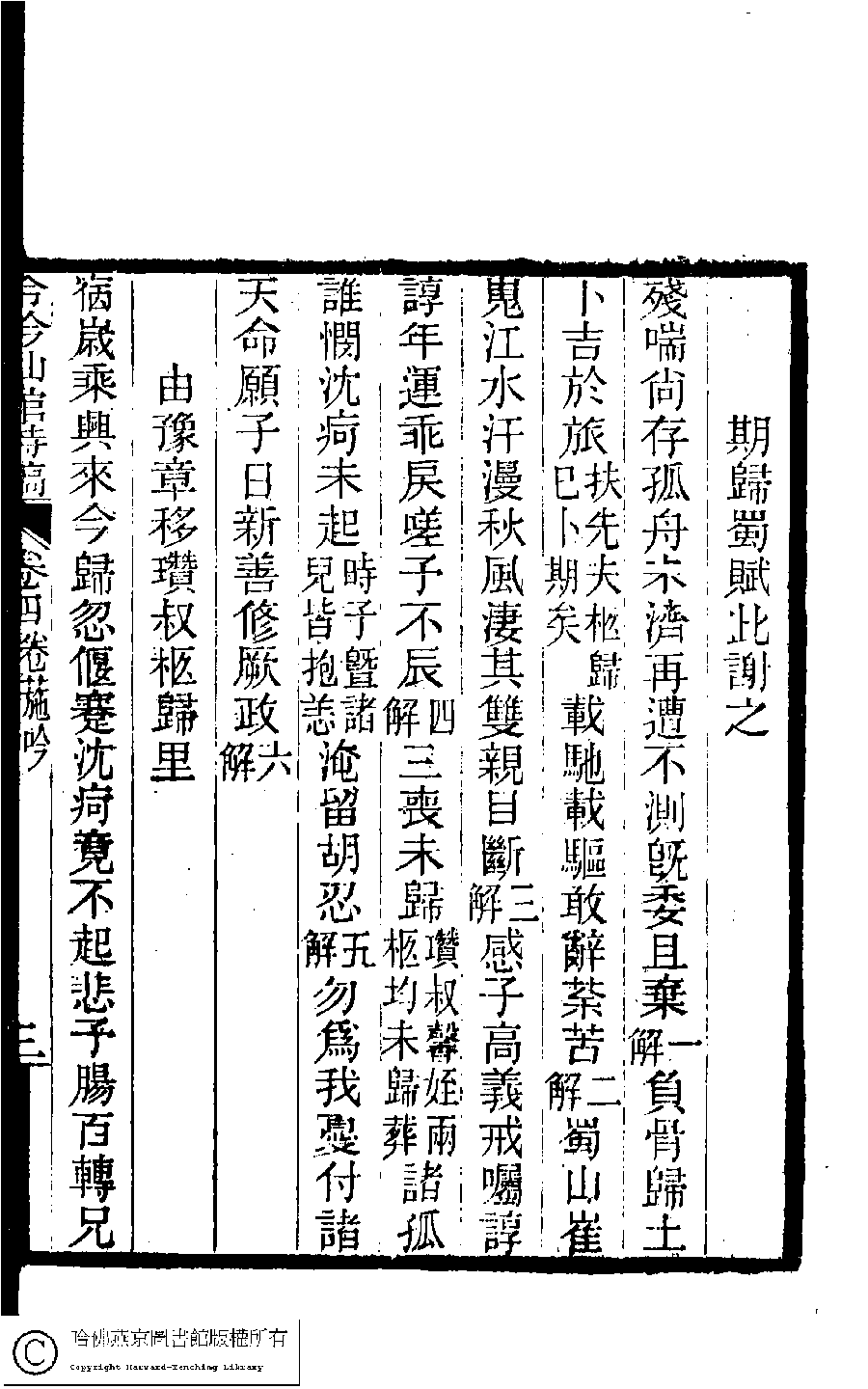 | (PRINT FRIENDLY VERSION) 冷吟仙舘詩稿﹕八卷﹐詩餘一卷﹐文存一卷(淸左錫嘉撰)。淸光緖辛卯(1891)刻本。 ![]() 頁碼 : 4.3a | 点 击 放 大 | 冷吟仙舘詩稿﹕八卷﹐詩餘一卷﹐文存一卷(淸左錫嘉撰)。淸光緖辛卯(1891)刻本。![]() 頁碼 : 4.2b | 点 击 放 大 | 返回 |