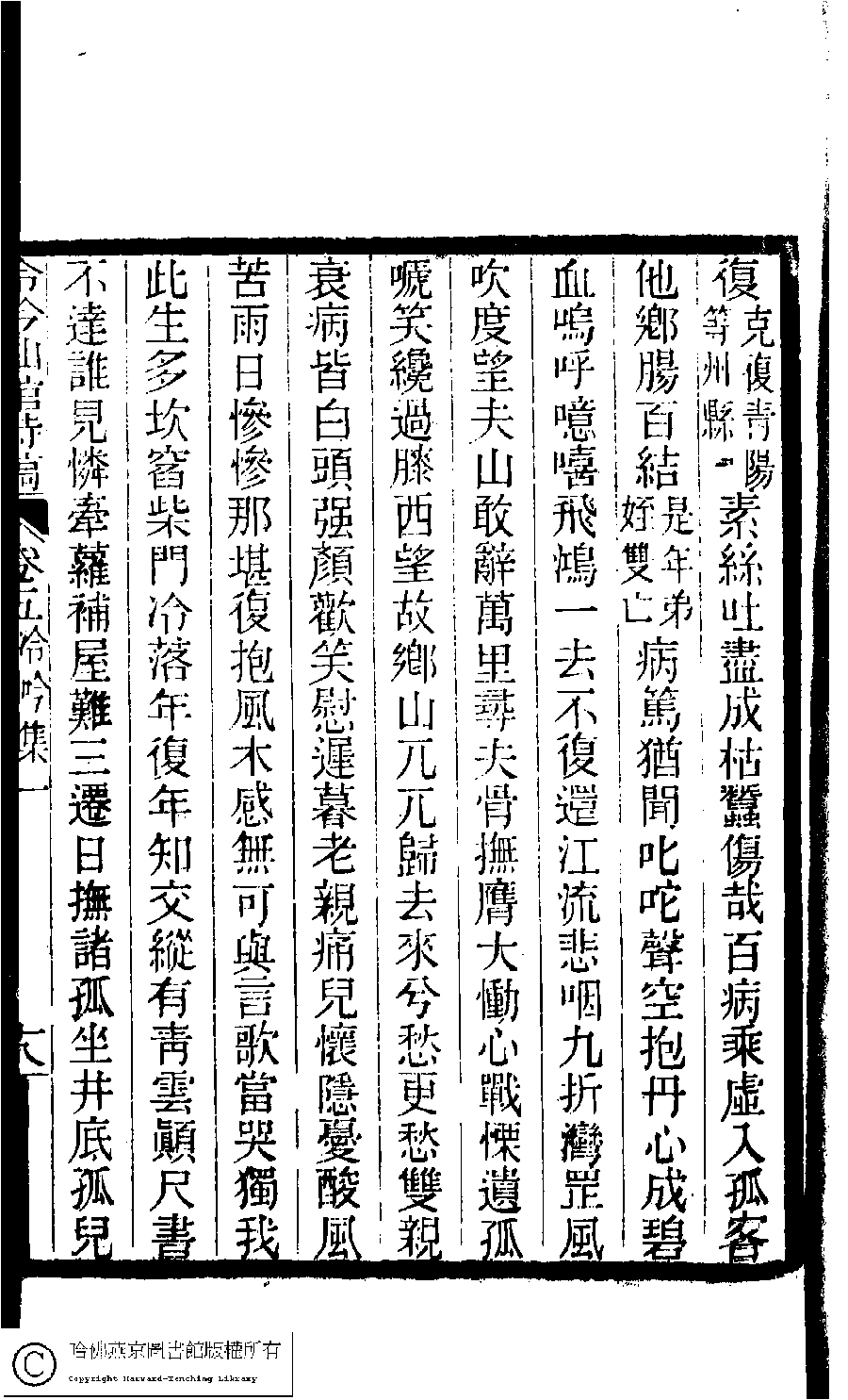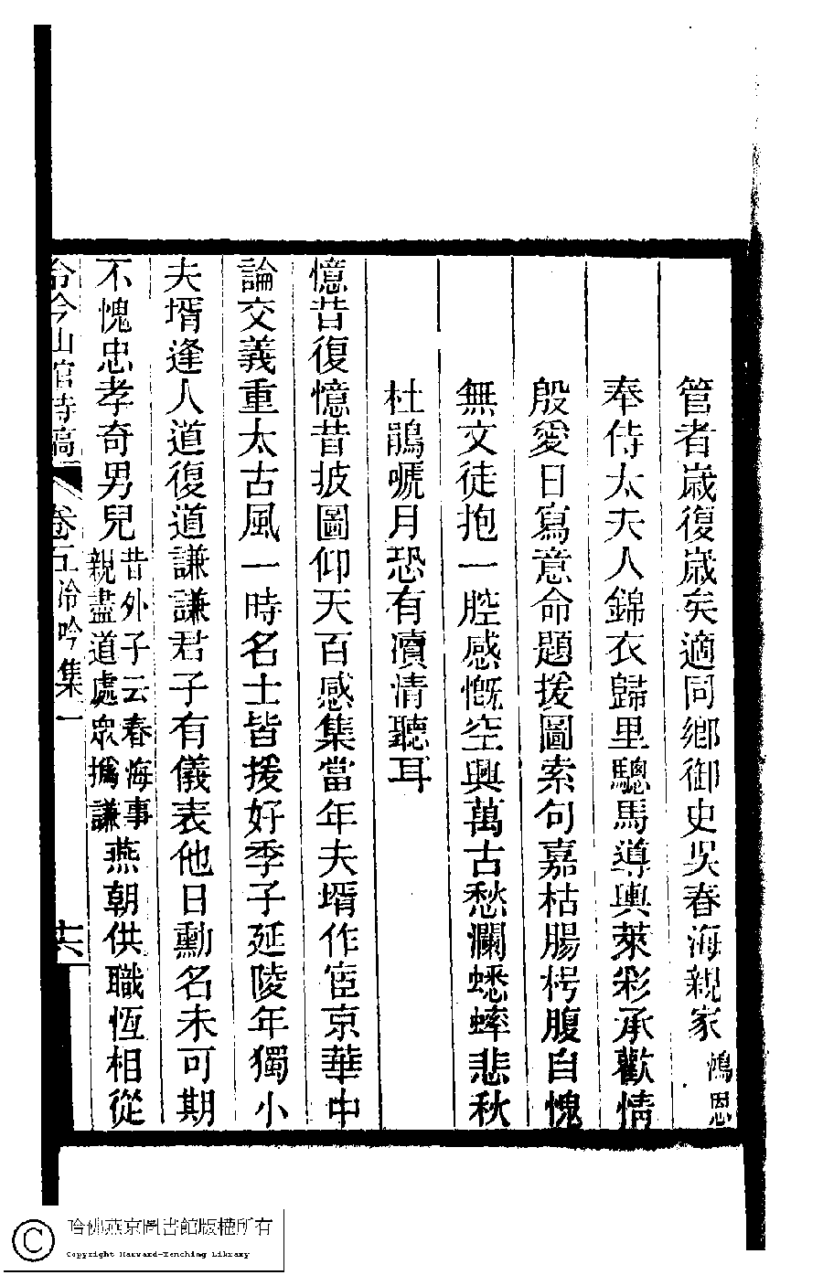 | 原書: 冷吟仙舘詩稿﹕八卷﹐詩餘一卷﹐文存一卷(淸左錫嘉撰) |