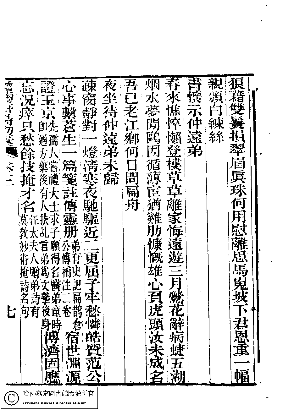 | (PRINT FRIENDLY VERSION) 澹蘜軒詩初稿﹕四卷﹐詞﹕一卷(清張䌌英撰)。道光二十年(1840)刻本。 ![]() 頁碼 : 3.7a | 点 击 放 大 | 返回 |