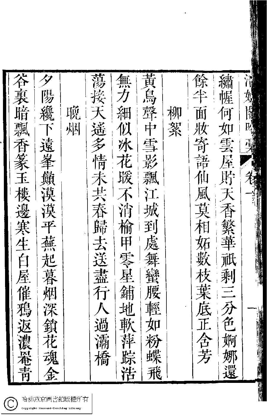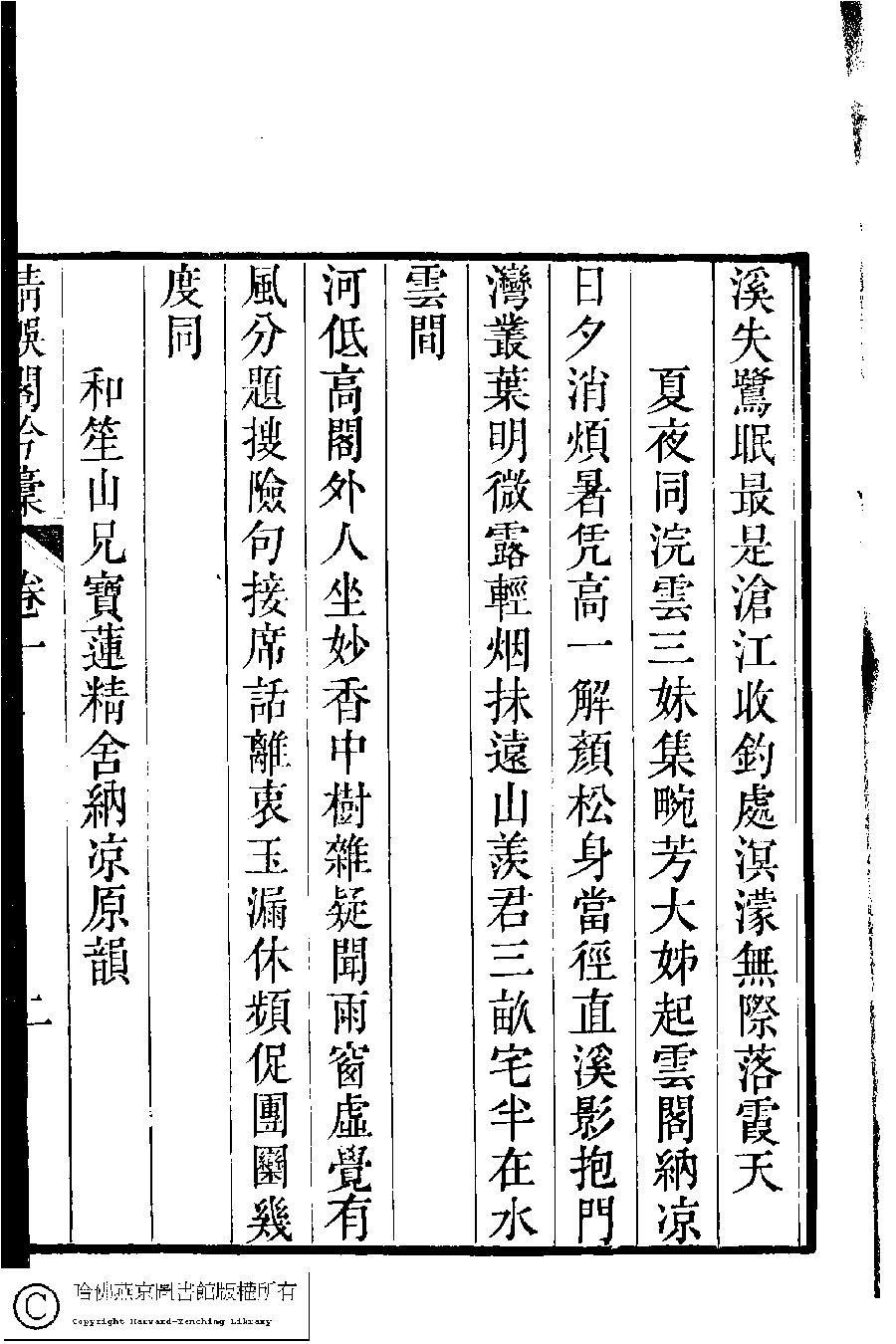 | (PRINT FRIENDLY VERSION) 清娛閣吟稾﹕六卷(清鮑之蕙撰)。嘉慶16年 [1811]刻本 ![]() 頁碼 : 1.2a | 点 击 放 大 | 清娛閣吟稾﹕六卷(清鮑之蕙撰)。嘉慶16年 [1811]刻本![]() 頁碼 : 1.1b | 点 击 放 大 | 返回 |