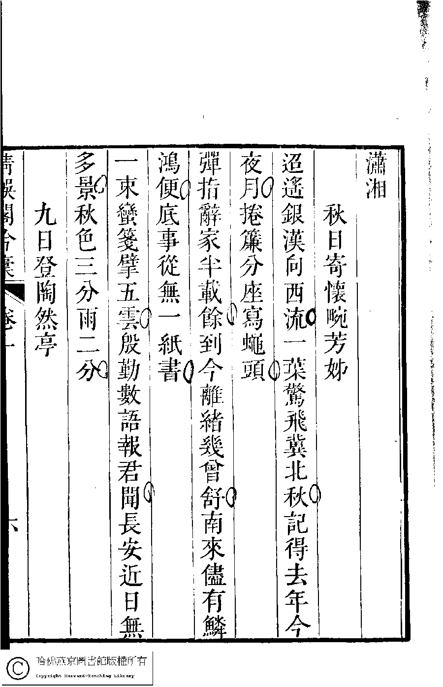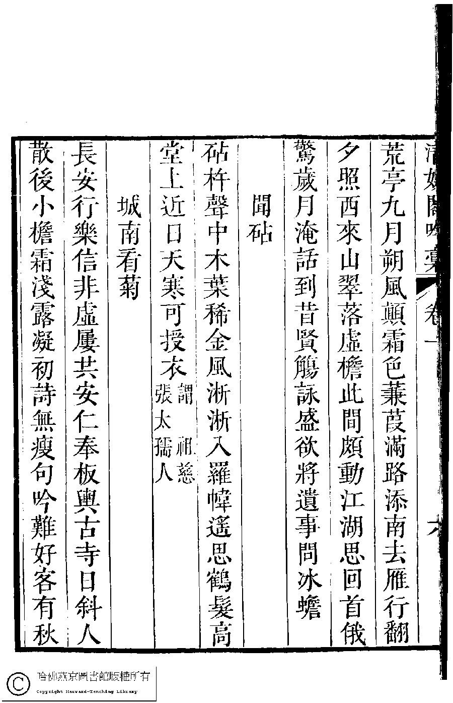 | (PRINT FRIENDLY VERSION) 清娛閣吟稾﹕六卷(清鮑之蕙撰)。嘉慶16年 [1811]刻本 ![]() 頁碼 : 1.6b | 点 击 放 大 | 清娛閣吟稾﹕六卷(清鮑之蕙撰)。嘉慶16年 [1811]刻本![]() 頁碼 : 1.6a | 点 击 放 大 | 返回 |